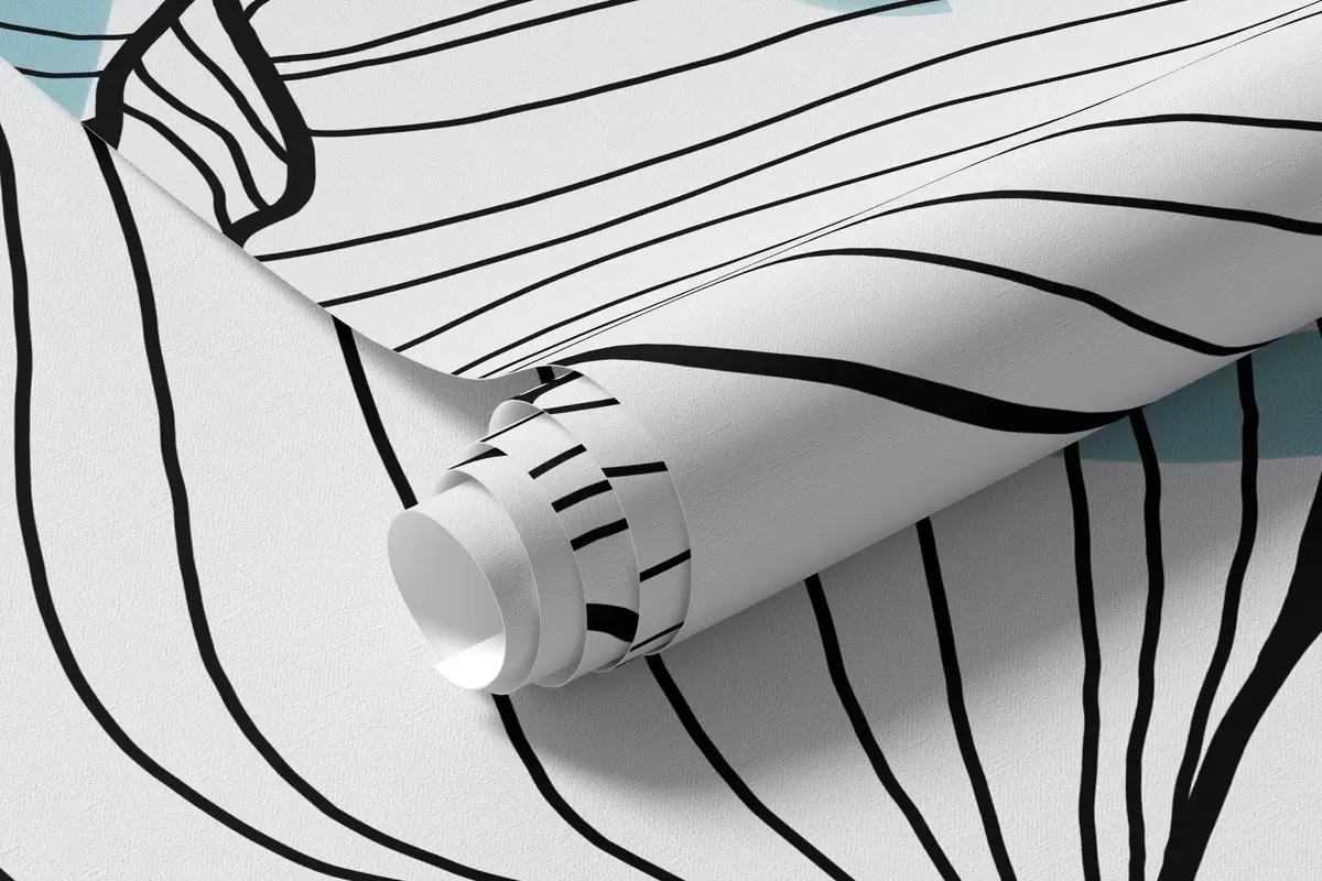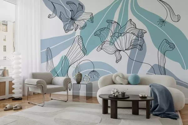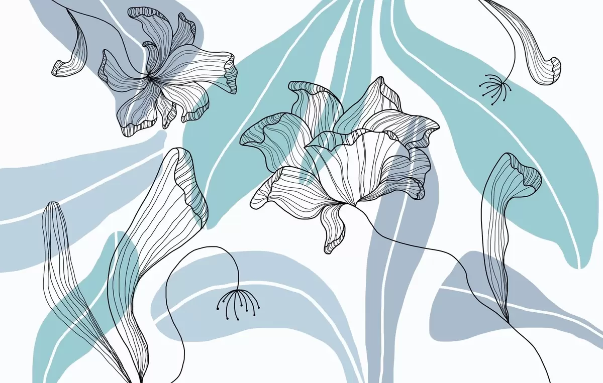 Fototapet frunze și flori abstracte în tonuri de albastru Nr. w04499v2