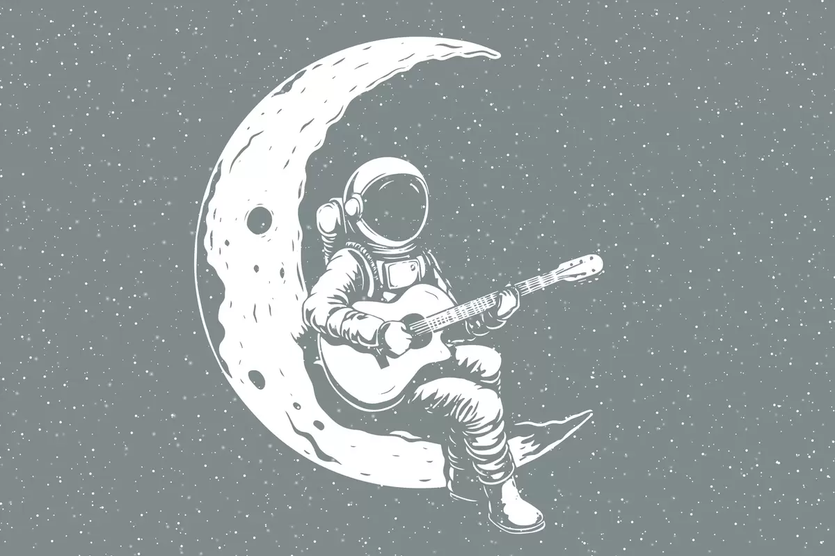Fototapet Cosmonaut, lună, chitară Nr. w04514v1