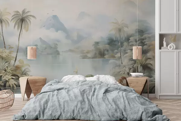 Fototapet Râu în junglă, lângă munți Nr. w04536