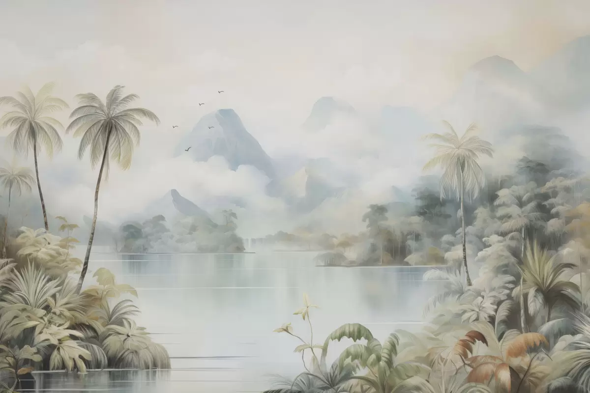 Fototapet Râu în junglă, lângă munți Nr. w04536