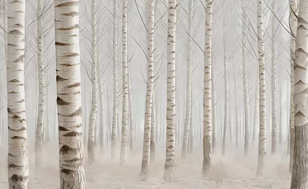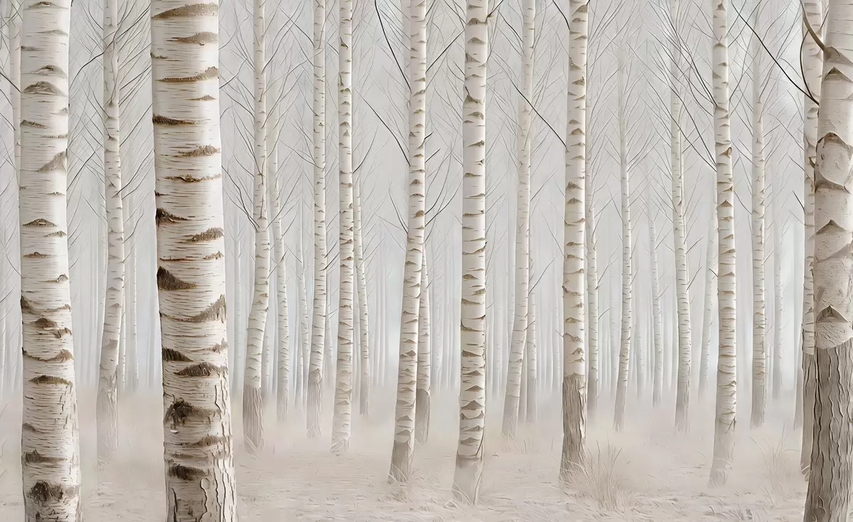 Fototapet Pădure de mesteacăn în ceață, minimalism luminos Nr. w04574
