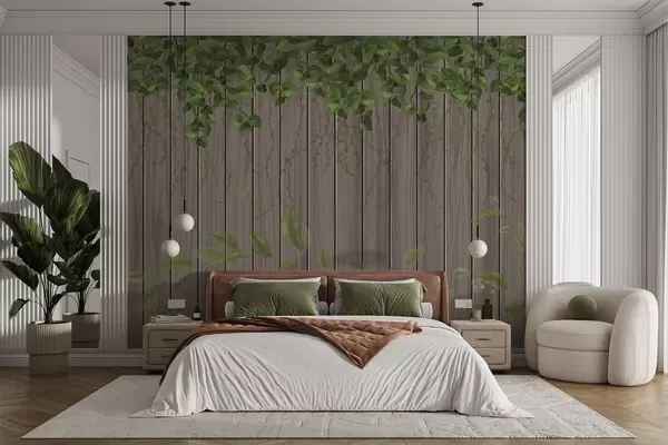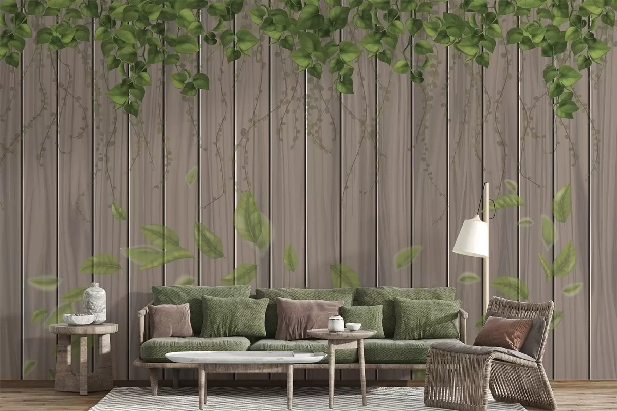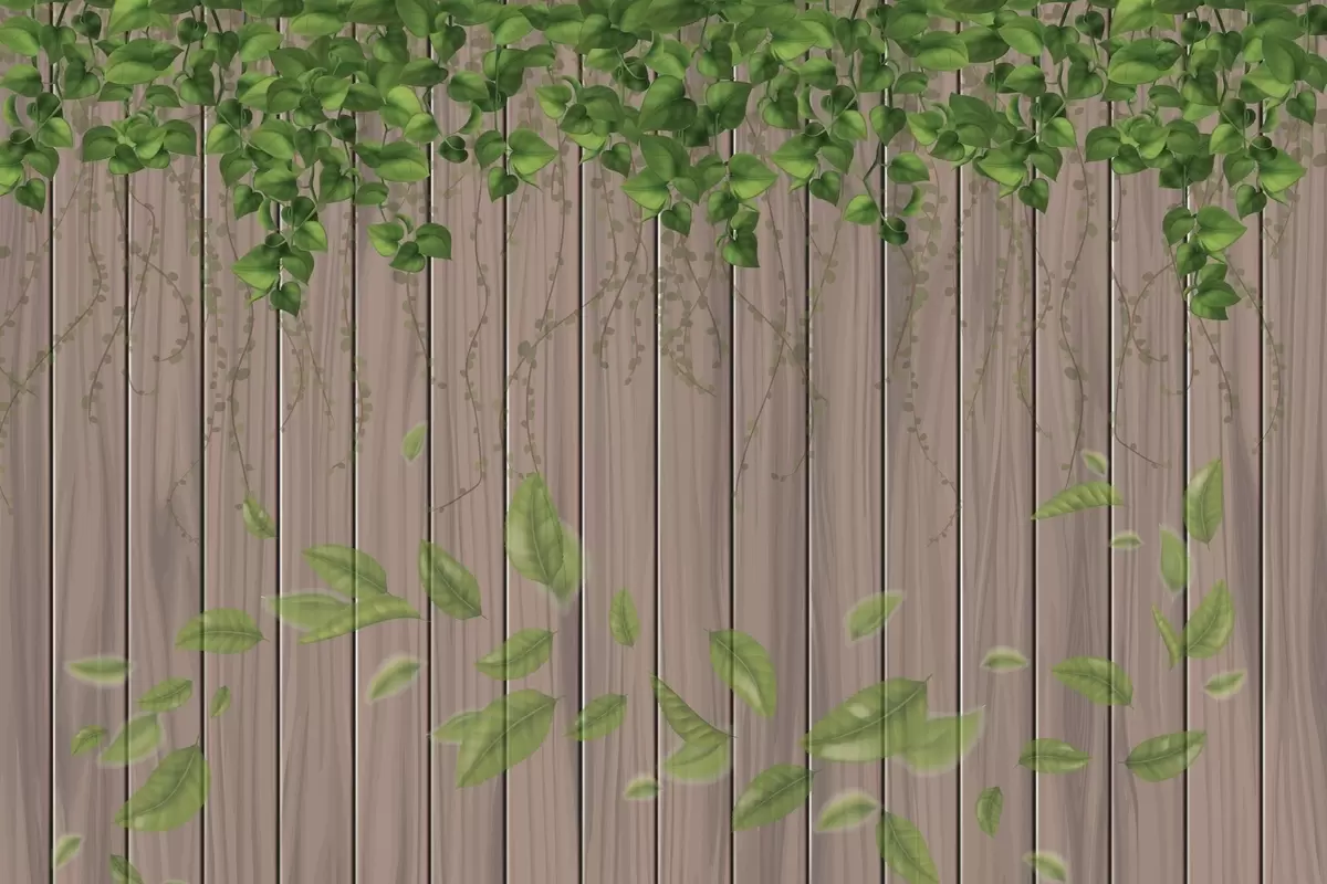 Fototapet Plăci imitație de lemn cu frunze atârnate Nr. w04603