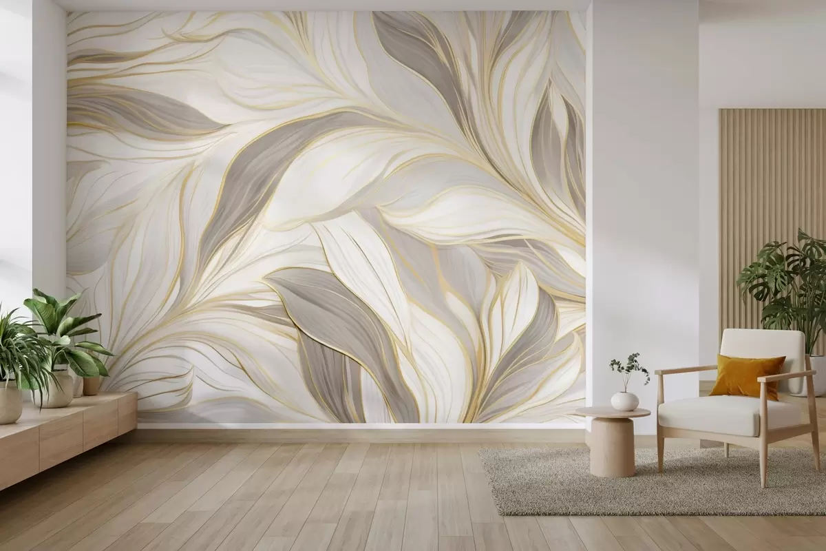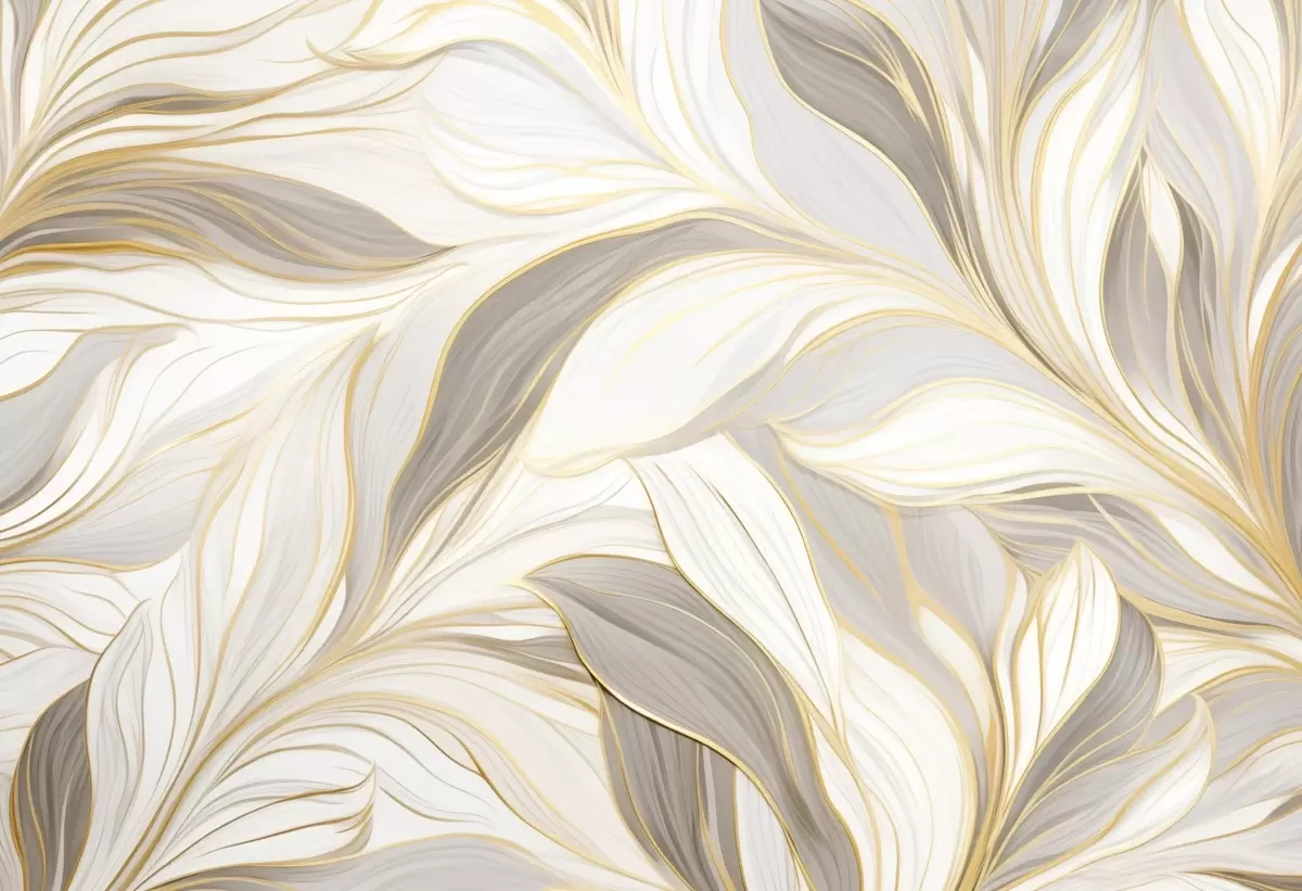 Fototapet Frunze cu curbe fine în nuanțe de bej-gri deschis Nr. w04609