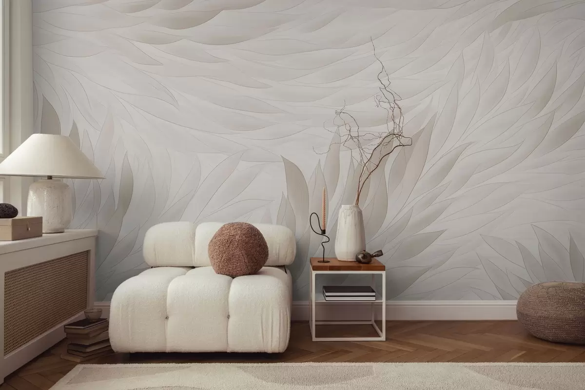 Fototapet Frunze ondulate în nuanțe delicate de crem Nr. w04610