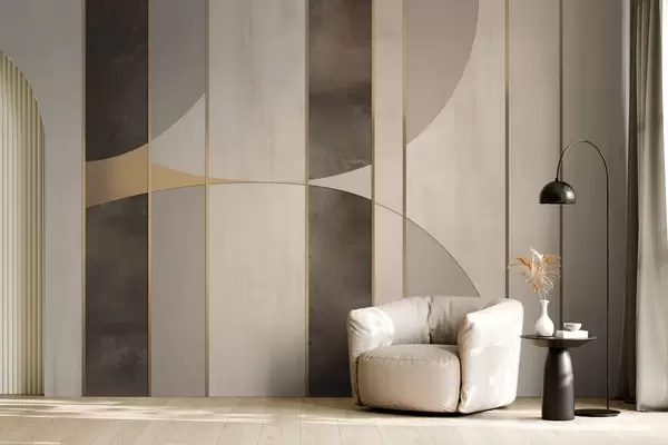 Fototapet Panouri geometrice cu arcuri și accente de culoarea șampaniei Nr. w04616
