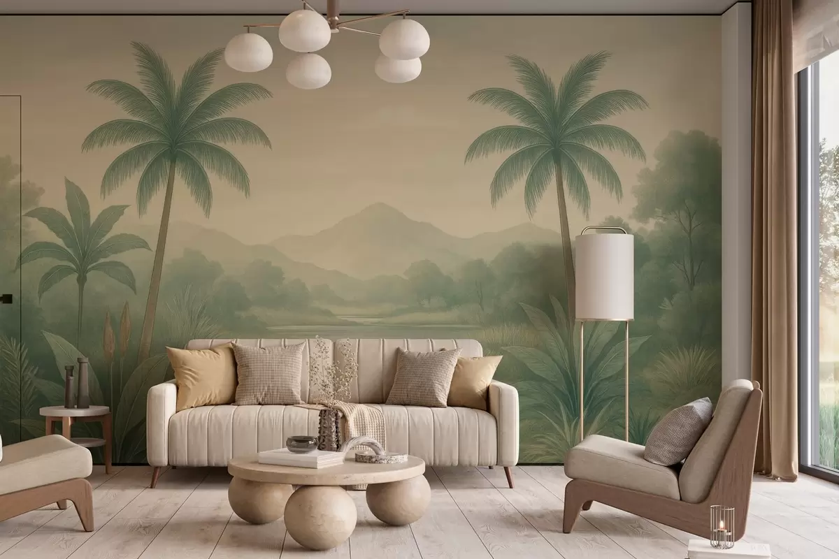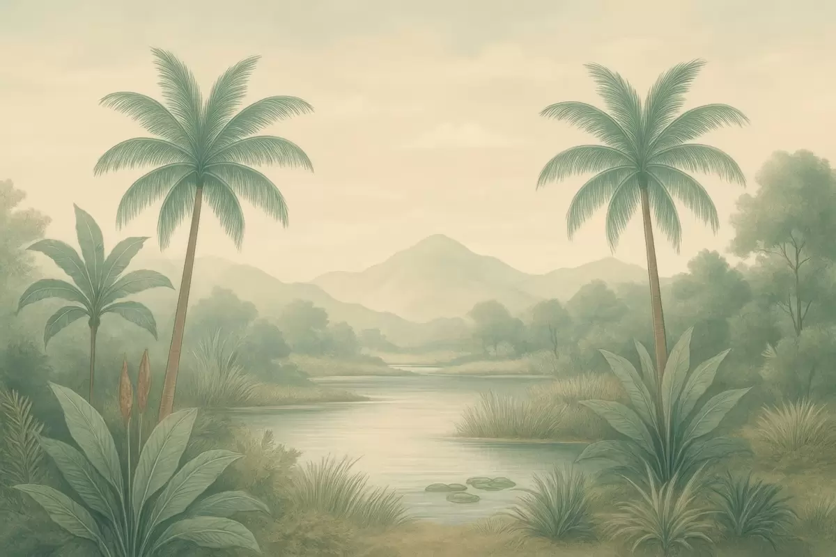 Fototapet peisaj tropical cu palmieri și un râu Nr. w04623