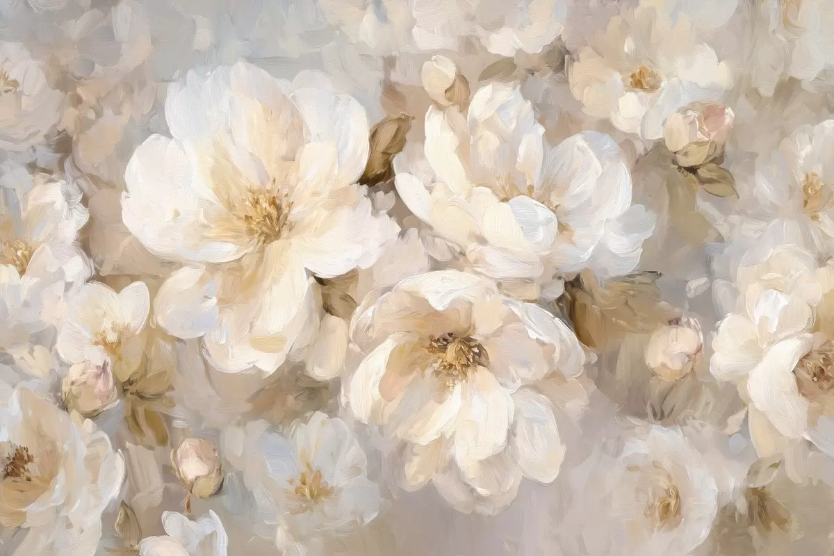 Fototapet flori mari în tonuri de alb și bej în stilul picturii în ulei Nr. w04633