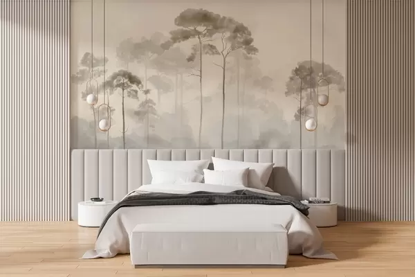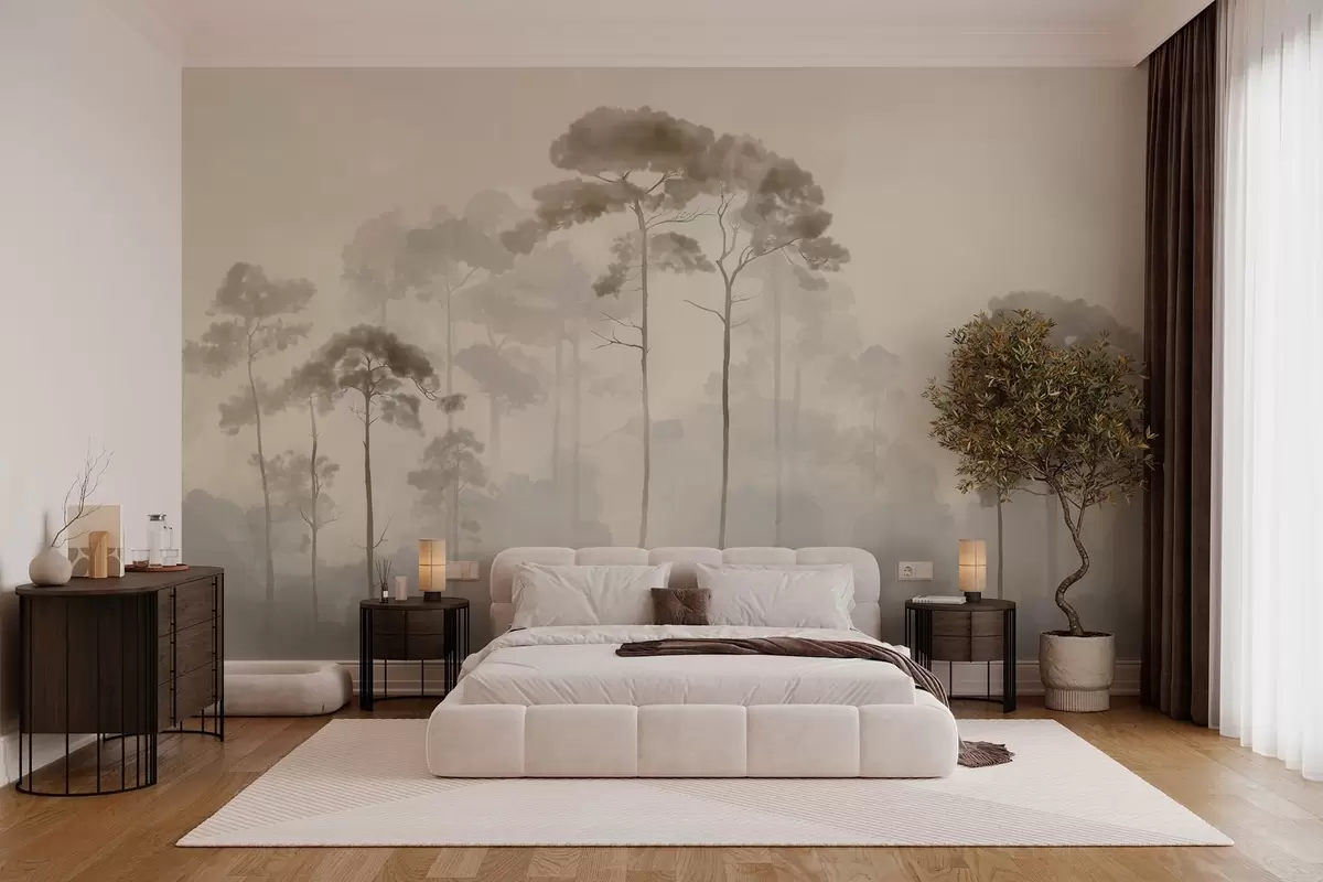 Fototapet siluete ușoare de pini în stil acuarelă Nr. w04634