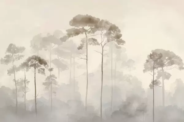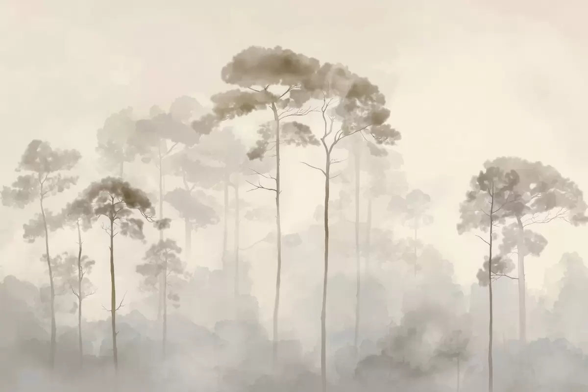 Fototapet siluete ușoare de pini în stil acuarelă Nr. w04634