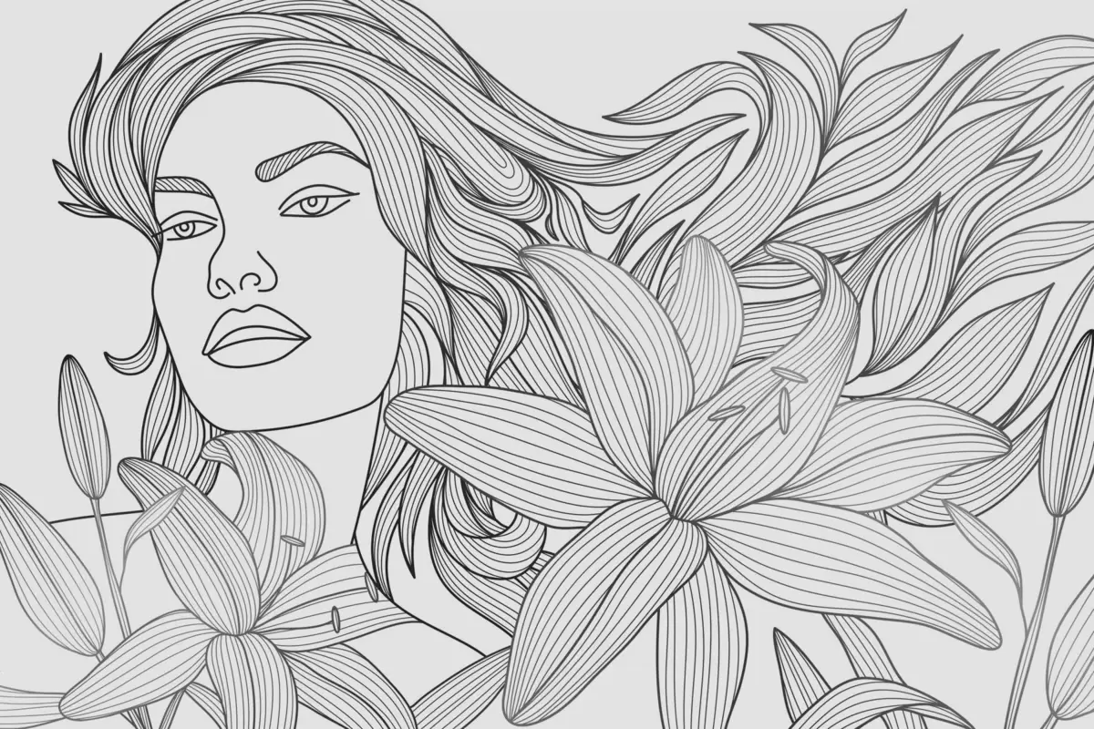 Fototapet Portretul unei fete înconjurată de flori de crin Nr. w04689