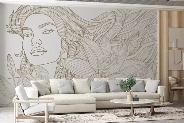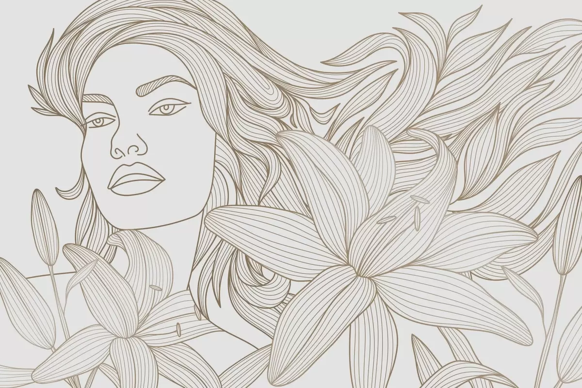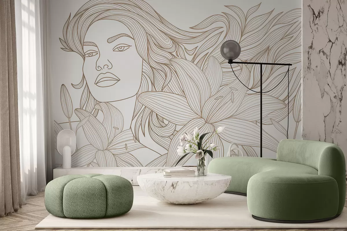 Fototapet Portretul unei fete în nuanțe de bej cu flori de crin Nr. w04689v1