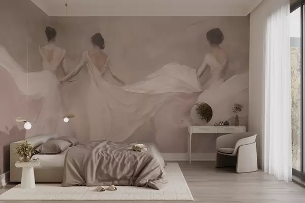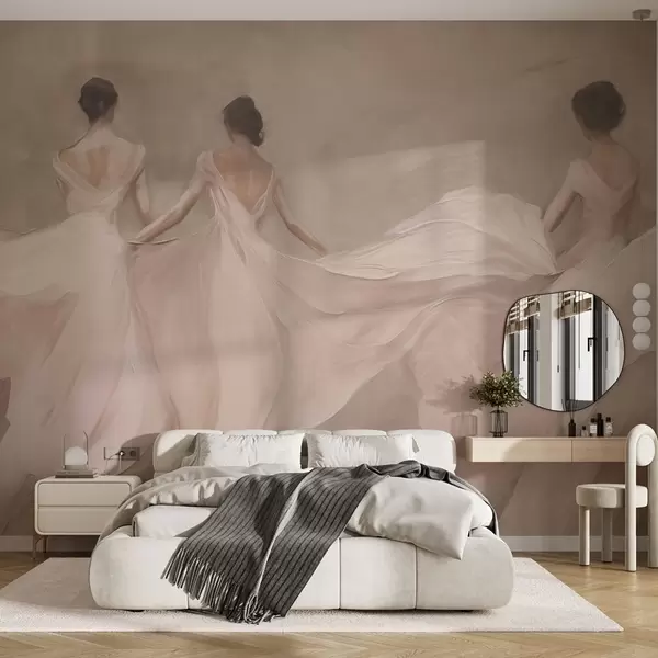 Fototapet Trei femei în rochii roz, țesătură fluidă, delicatețe Nr. w04709