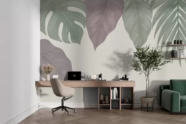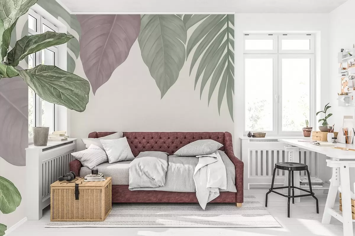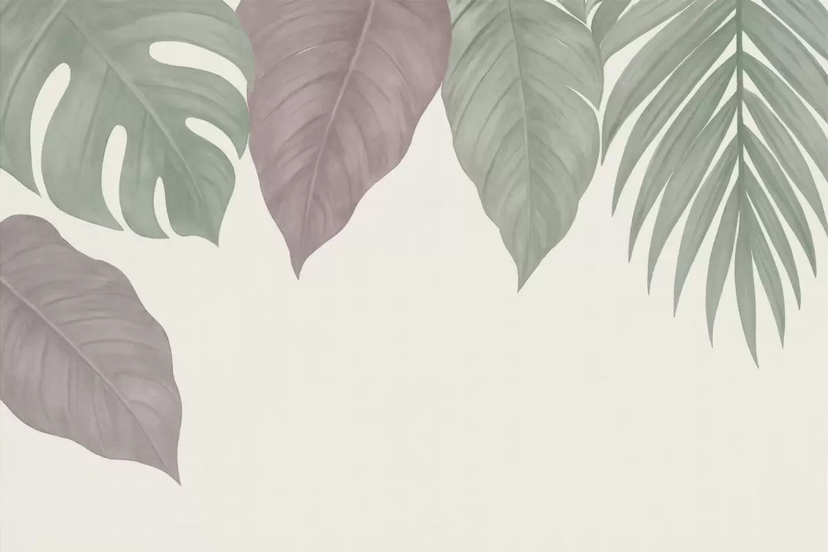 Fototapet frunze tropicale mari, într-un stil simplu, privite de sus Nr. w04819