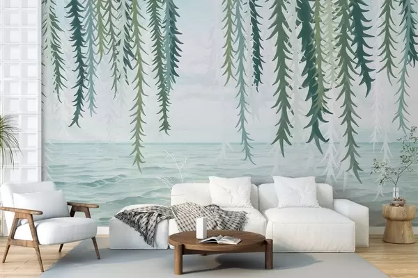 Fototapet Viță de vie delicată atârnând deasupra apei, în stil acuarelă Nr. w04830