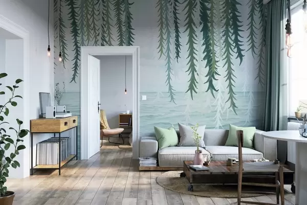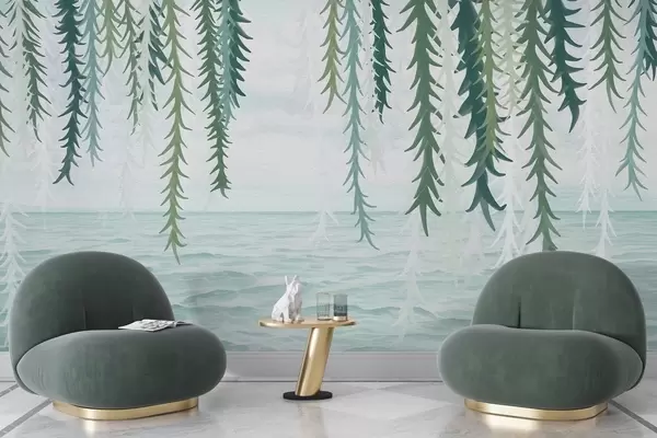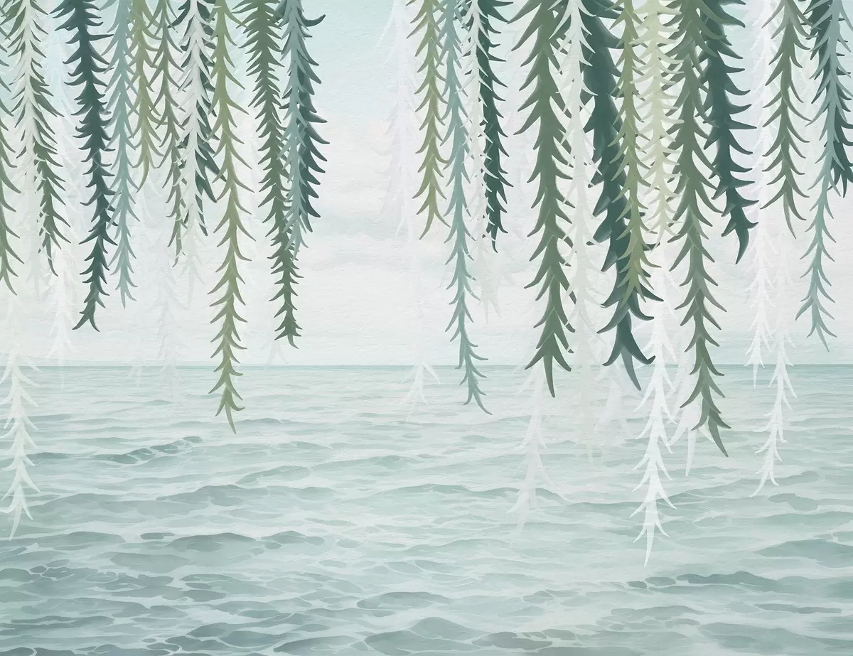 Fototapet Viță de vie delicată atârnând deasupra apei, în stil acuarelă Nr. w04830