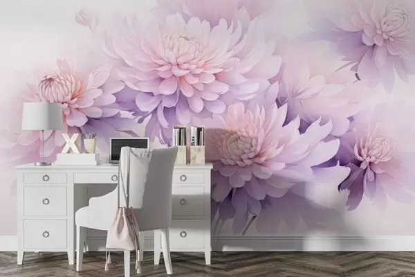 Fototapet Crizanteme luxuriante pictate în acuarelă pe un fundal deschis Nr. w04832