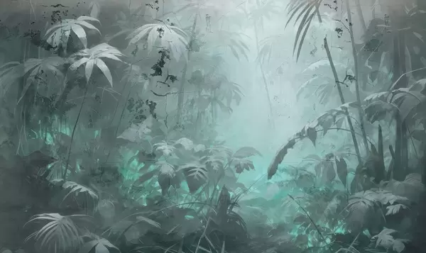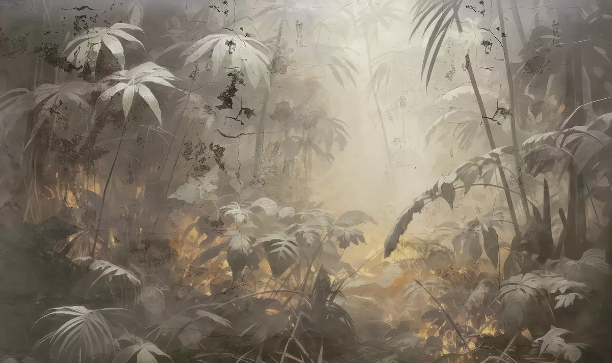 Fototapet Junglă pictată în spatele unui zid de beton murdar Nr. w04833