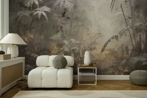 Fototapet Junglă pictată în spatele unui zid de beton murdar Nr. w04833