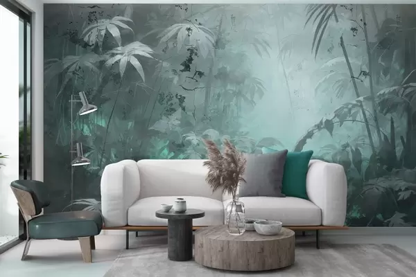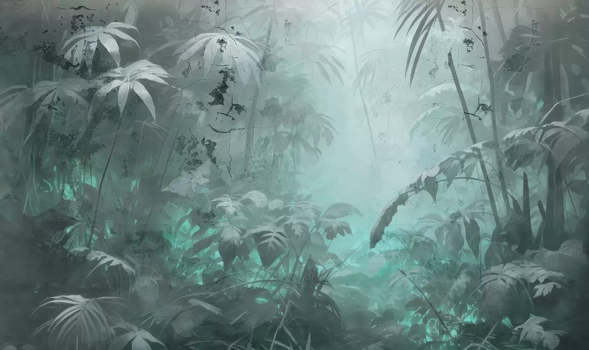 Fototapet Junglă pictată în spatele unui zid de beton murdar Nr. w04833v1