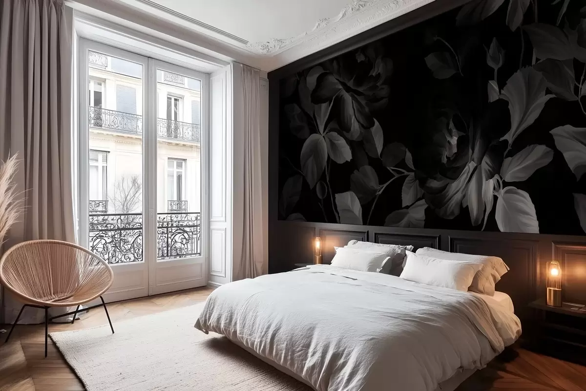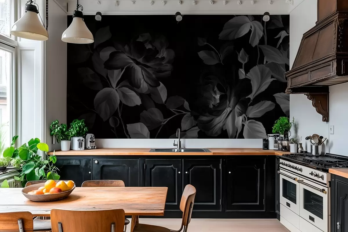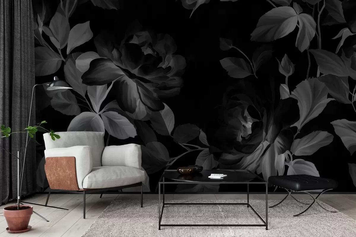 Fototapet trandafiri pitorești alb-negru în stilul picturii în ulei Nr. w04873v1