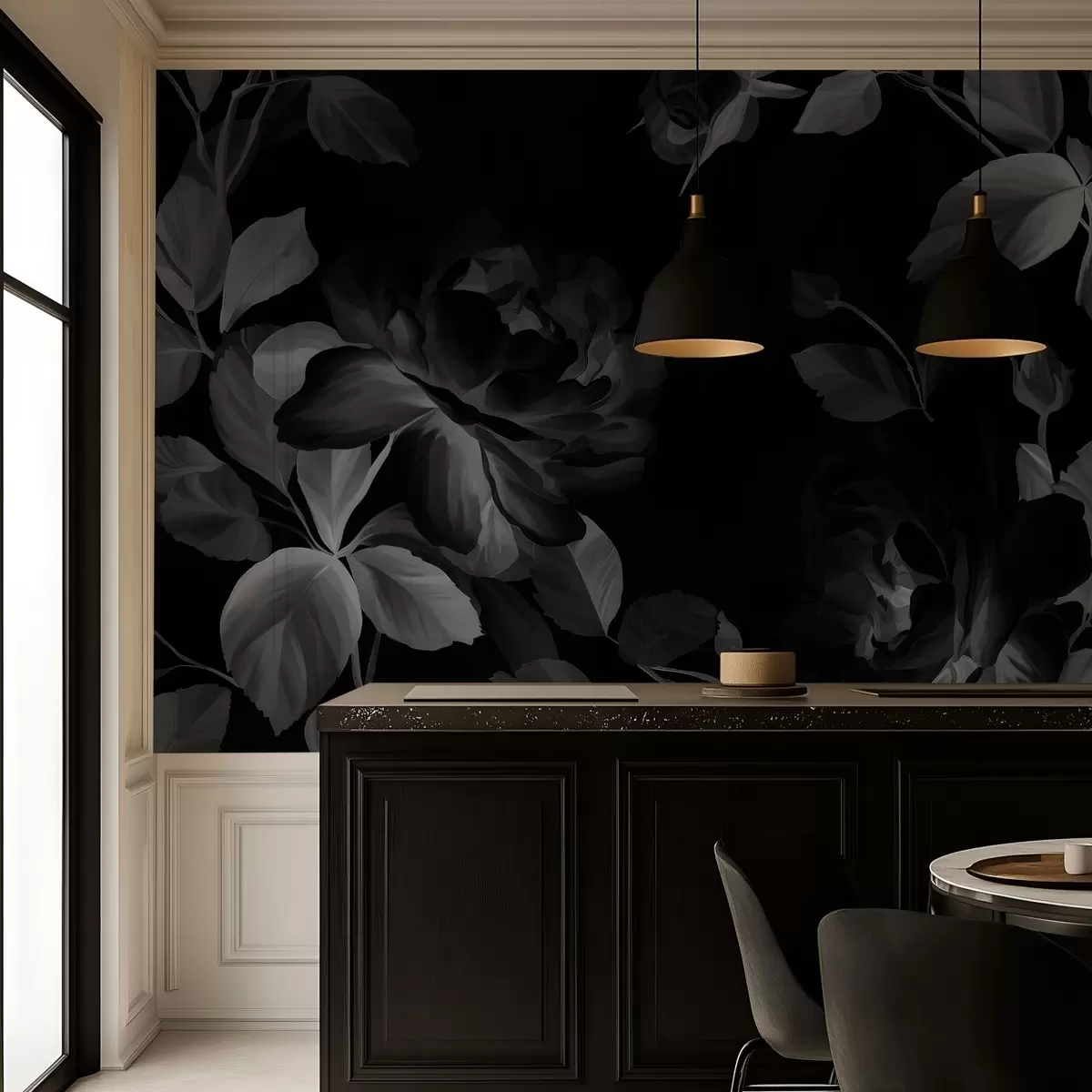 Fototapet trandafiri pitorești alb-negru în stilul picturii în ulei Nr. w04873v1