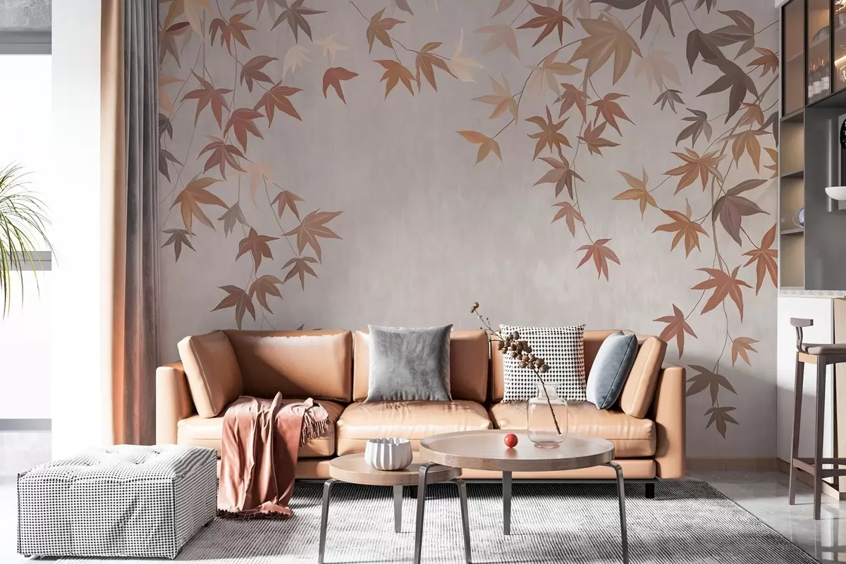 Fototapet frunze multicolore de iederă căzând de sus în stilul picturii în ulei Nr. w04878