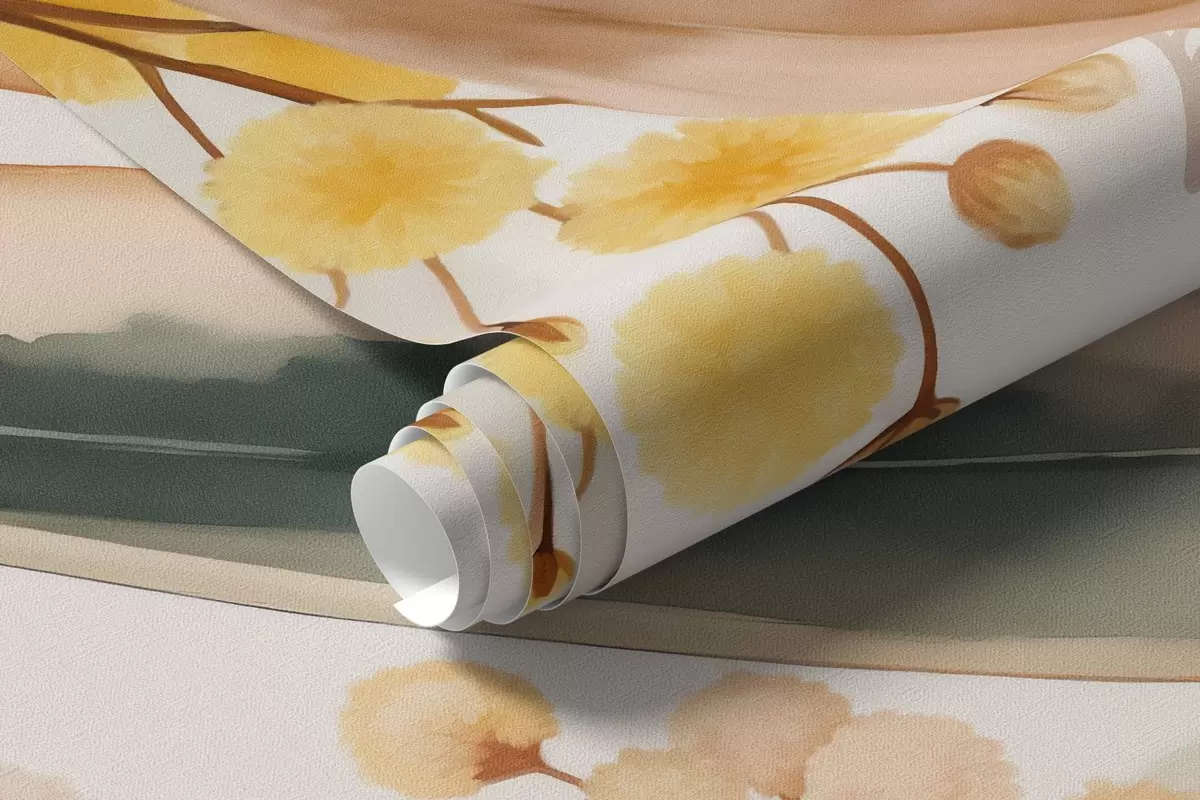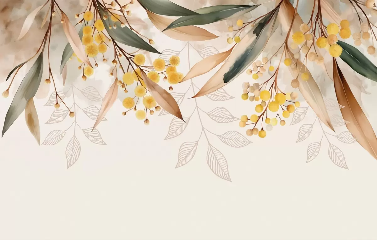 Fototapet flori și frunze de mimoză căzând de sus în stil acuarelă Nr. w04880