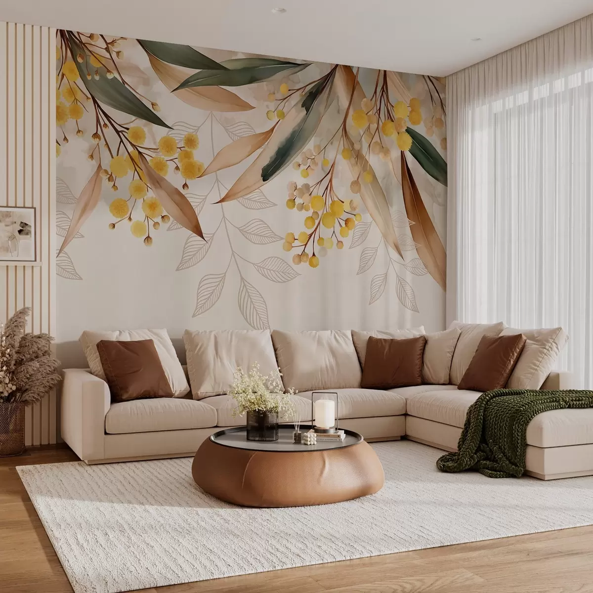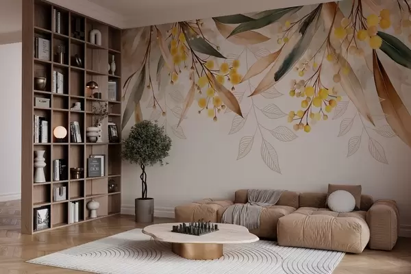 Fototapet flori și frunze de mimoză căzând de sus în stil acuarelă Nr. w04880