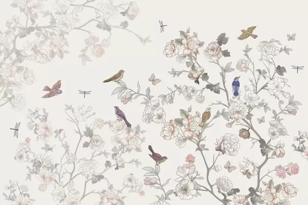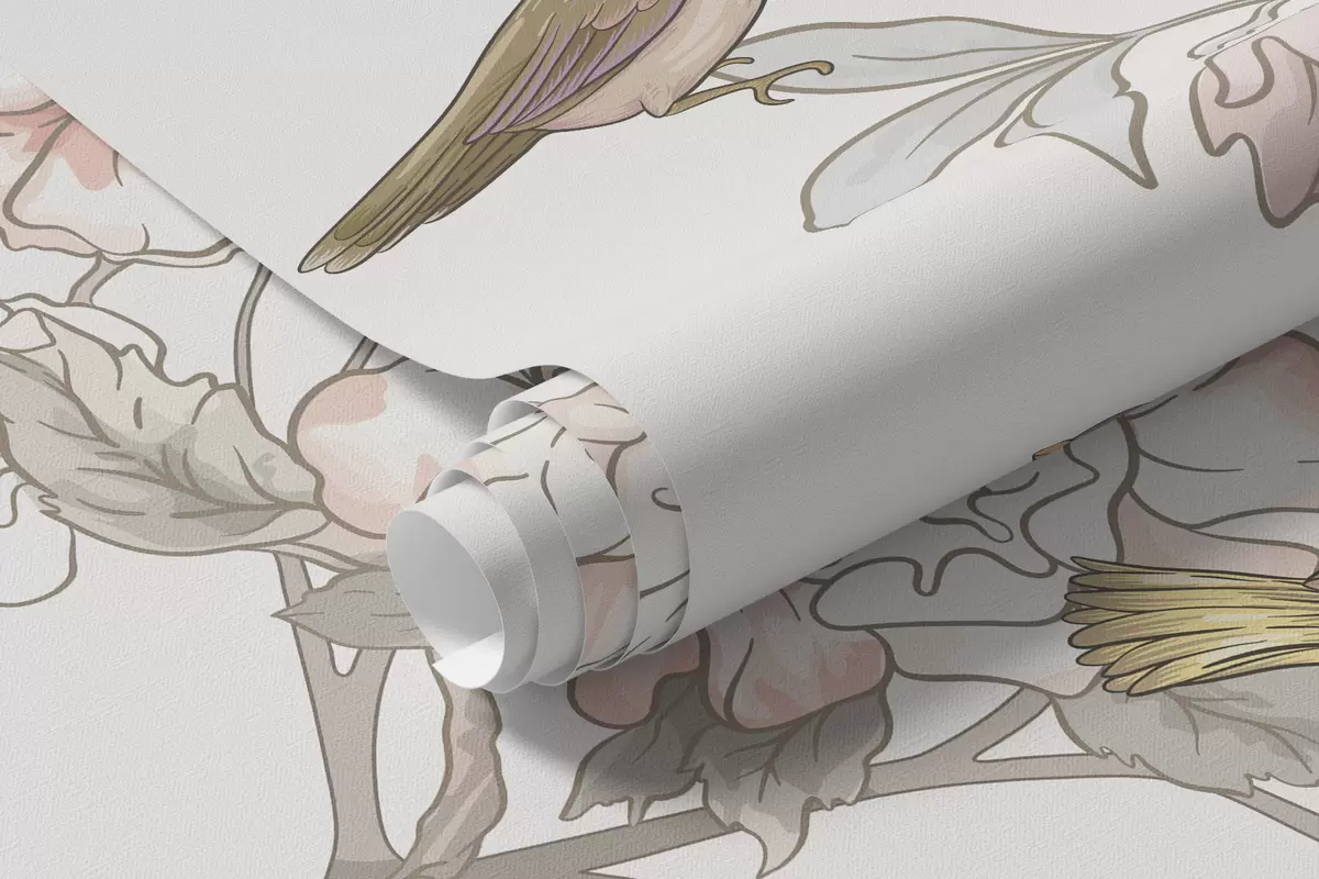Fototapet Păsări lângă ramuri cu flori Nr. w04939