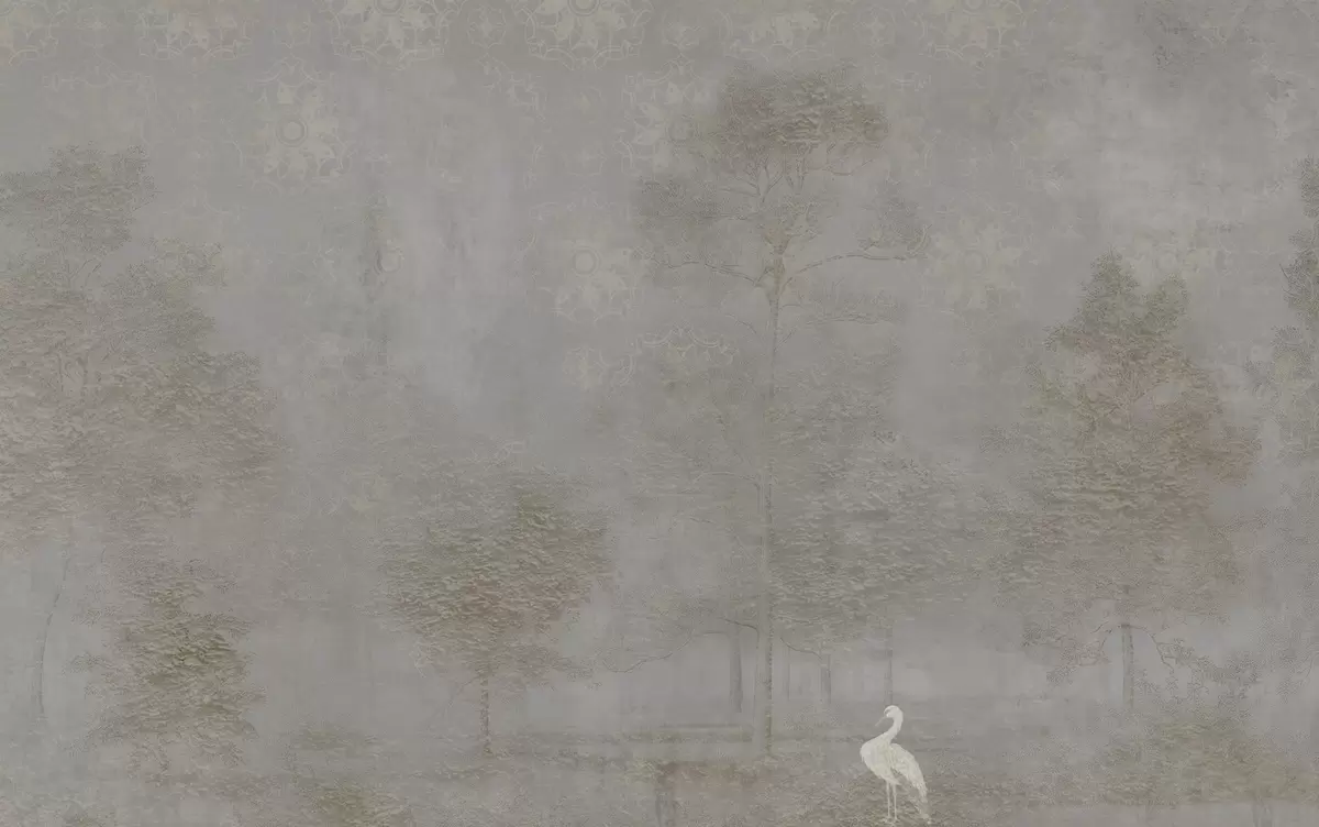 Fototapet Pădure ceațoasă cu o stârcă și un model ornamental deasupra Nr. w04953v1