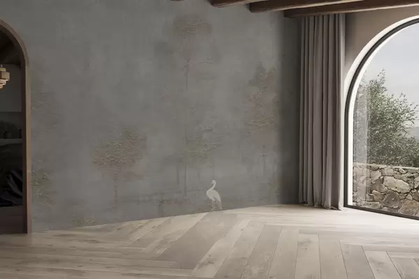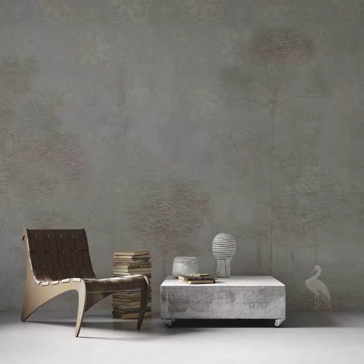 Fototapet Pădure ceațoasă cu o stârcă și un model ornamental deasupra Nr. w04953v1