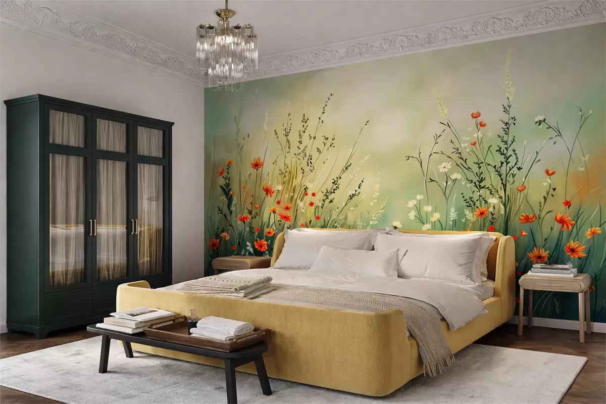 Fototapet Flori și ierburi de câmp în stil pictural delicat Nr. w05015