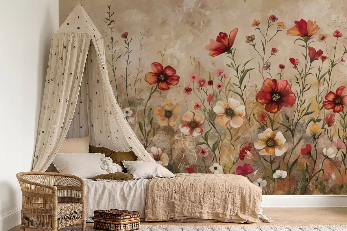Fototapet Compoziție florală cu fundal texturat în tonuri calde Nr. w05016