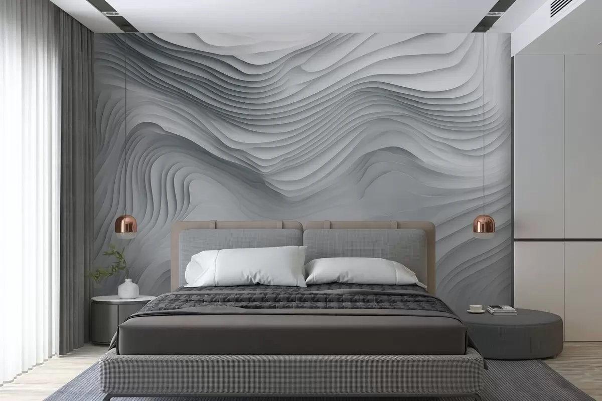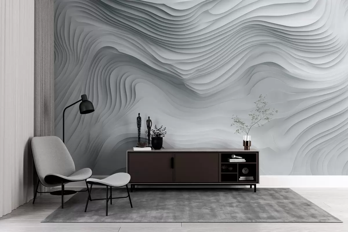 Fototapet imitație de reliefuri voluminoase în trepte, în tonuri de gri Nr. w05061
