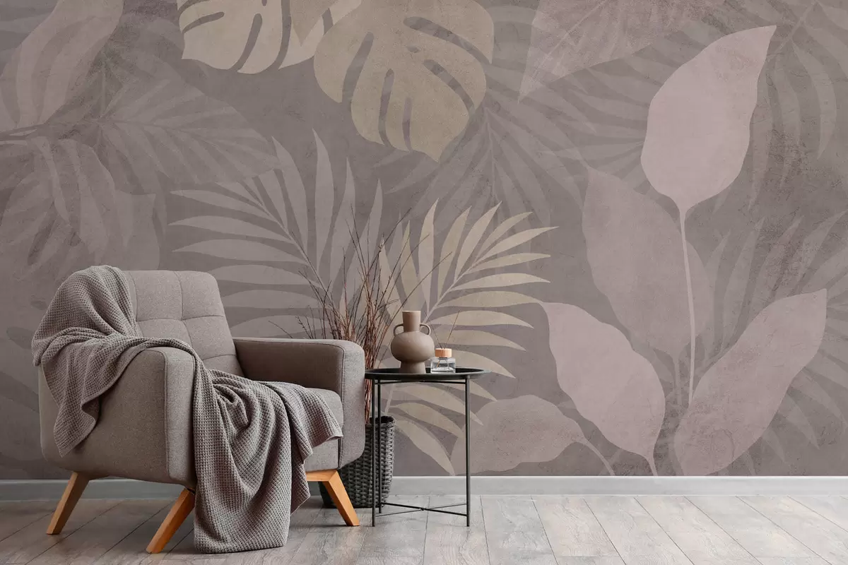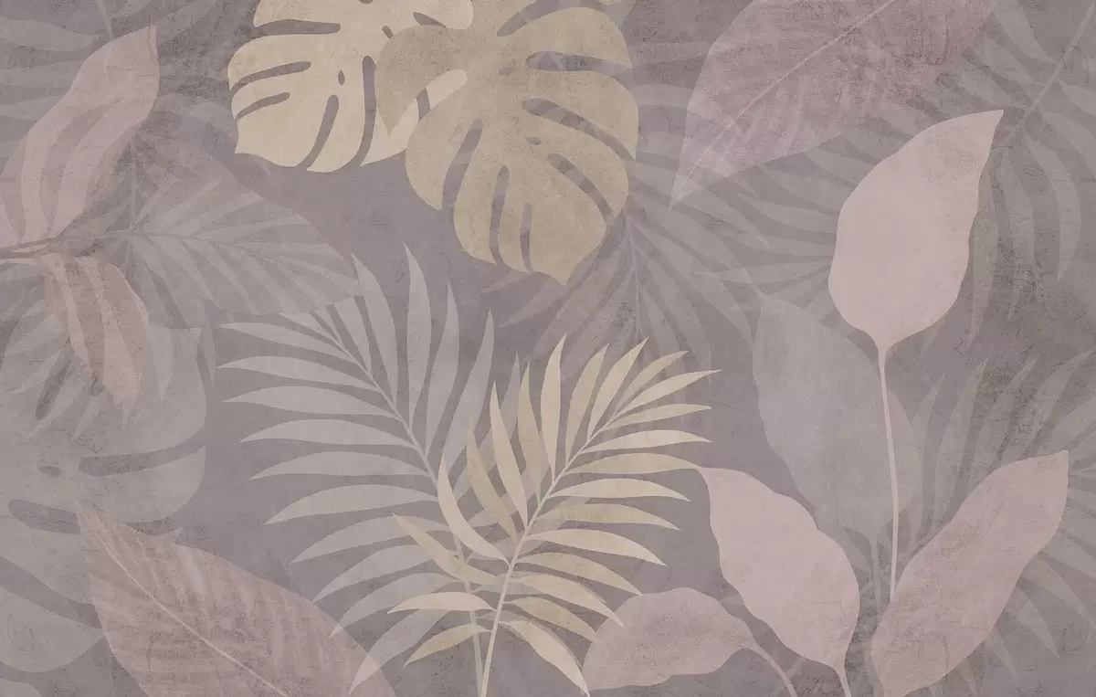 Fototapet frunze tropicale texturate pe fundal gri Nr. w05063v1