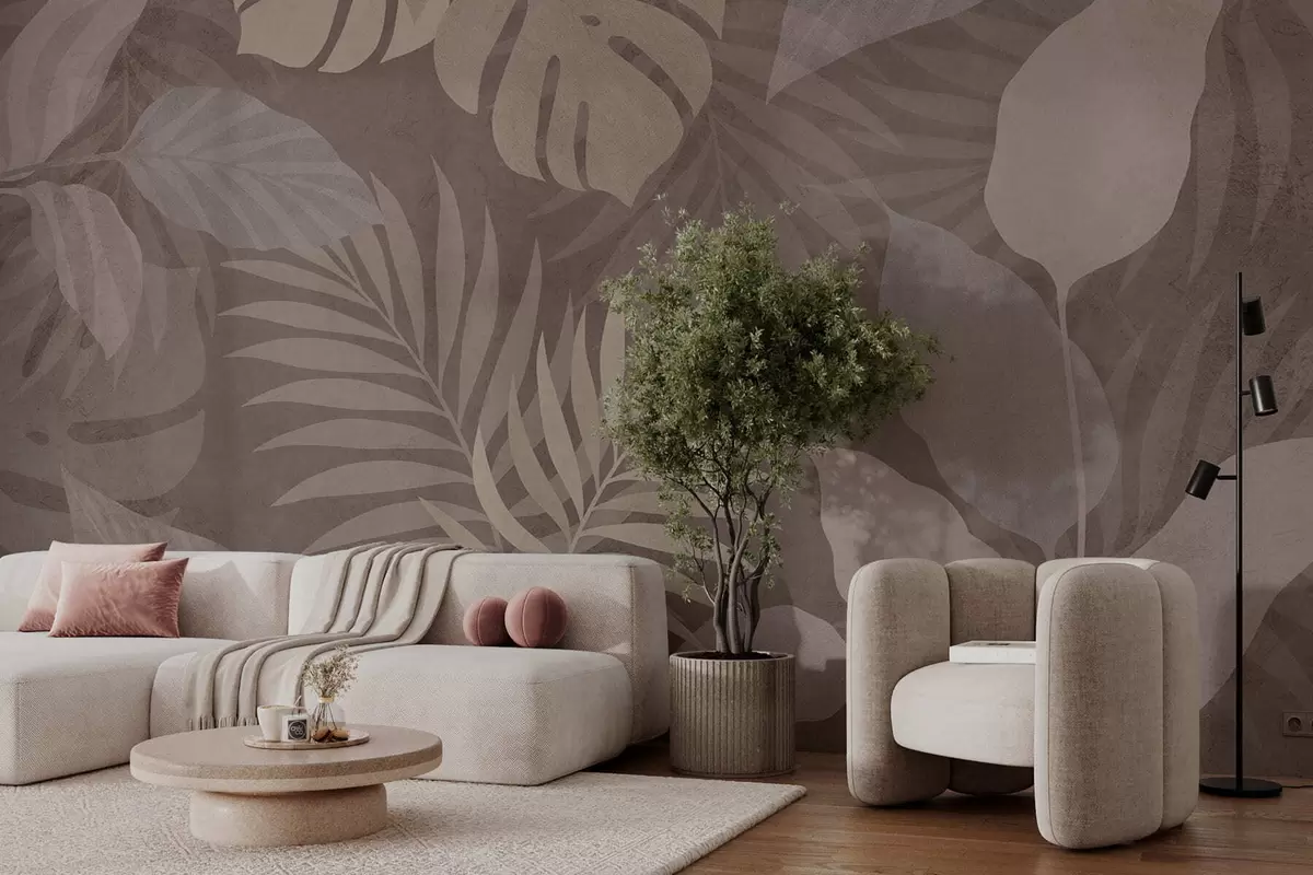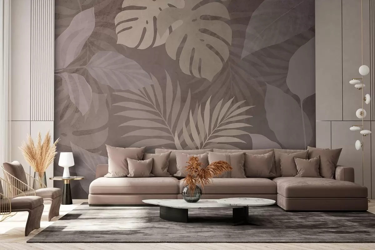 Fototapet frunze tropicale texturate pe un fundal ciocolatiu Nr. w05063v2