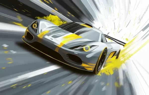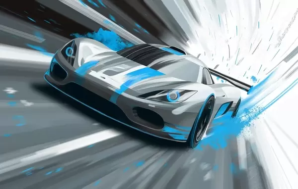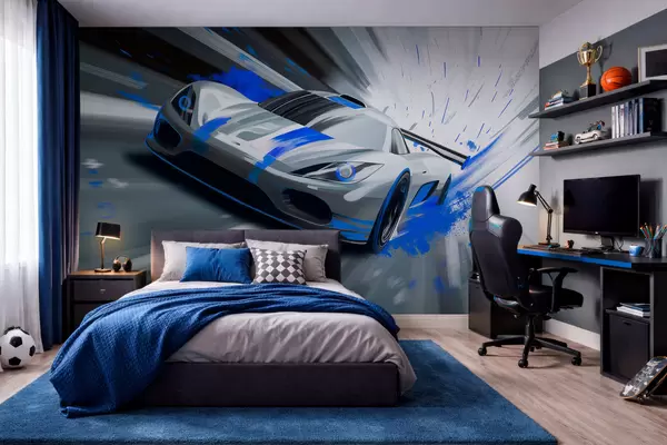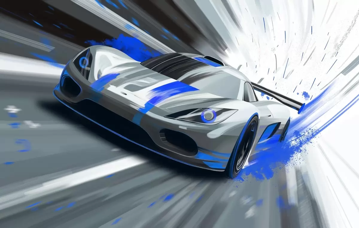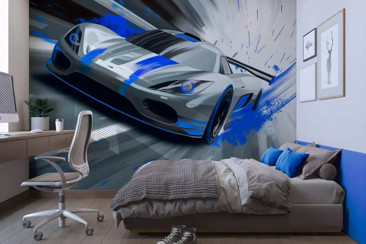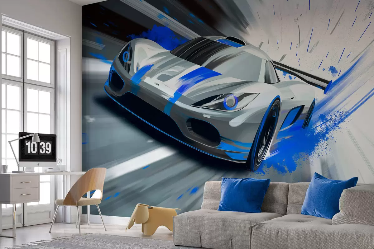 Fototapet mașină sport dinamică în stil de desen digital cu accente albastre Nr. w05069