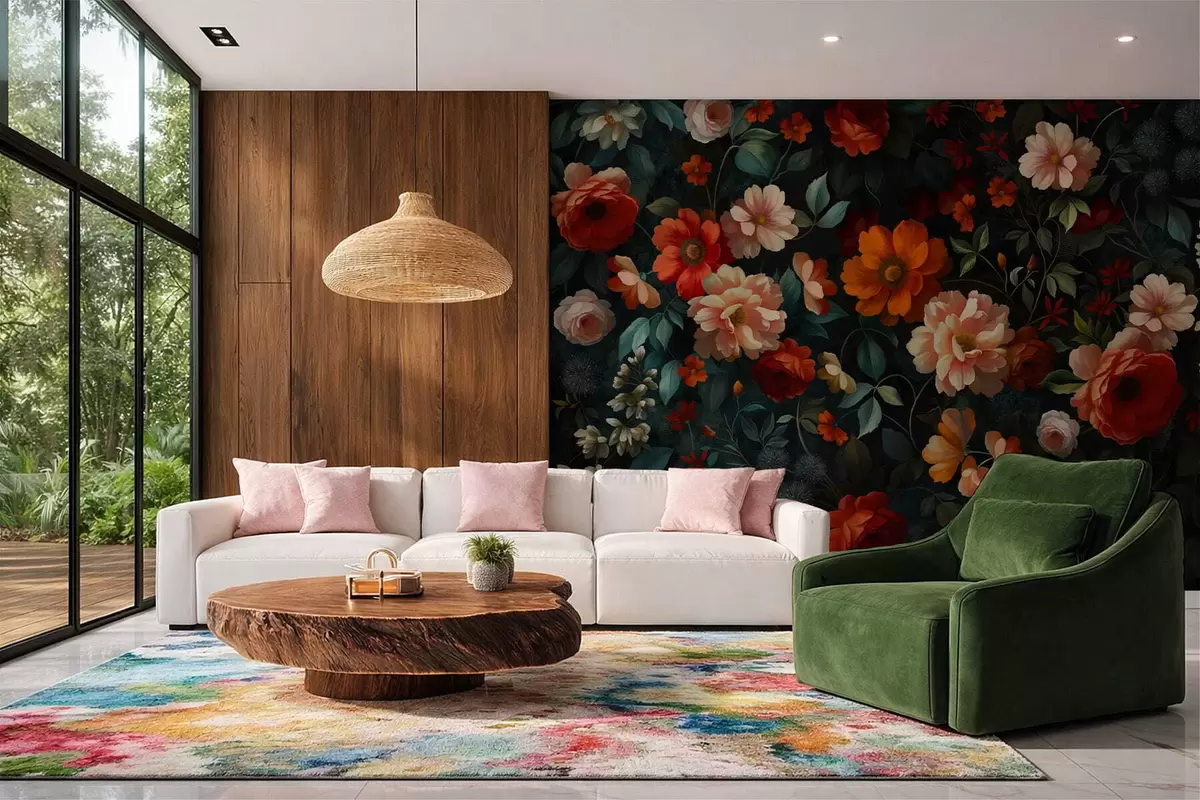 Fototapet Model floral închis la culoare, cu flori luxuriante de grădină Nr. w05087