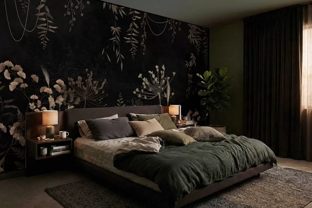 Fototapet Model botanic întunecat cu flori și frunze Nr. w05092