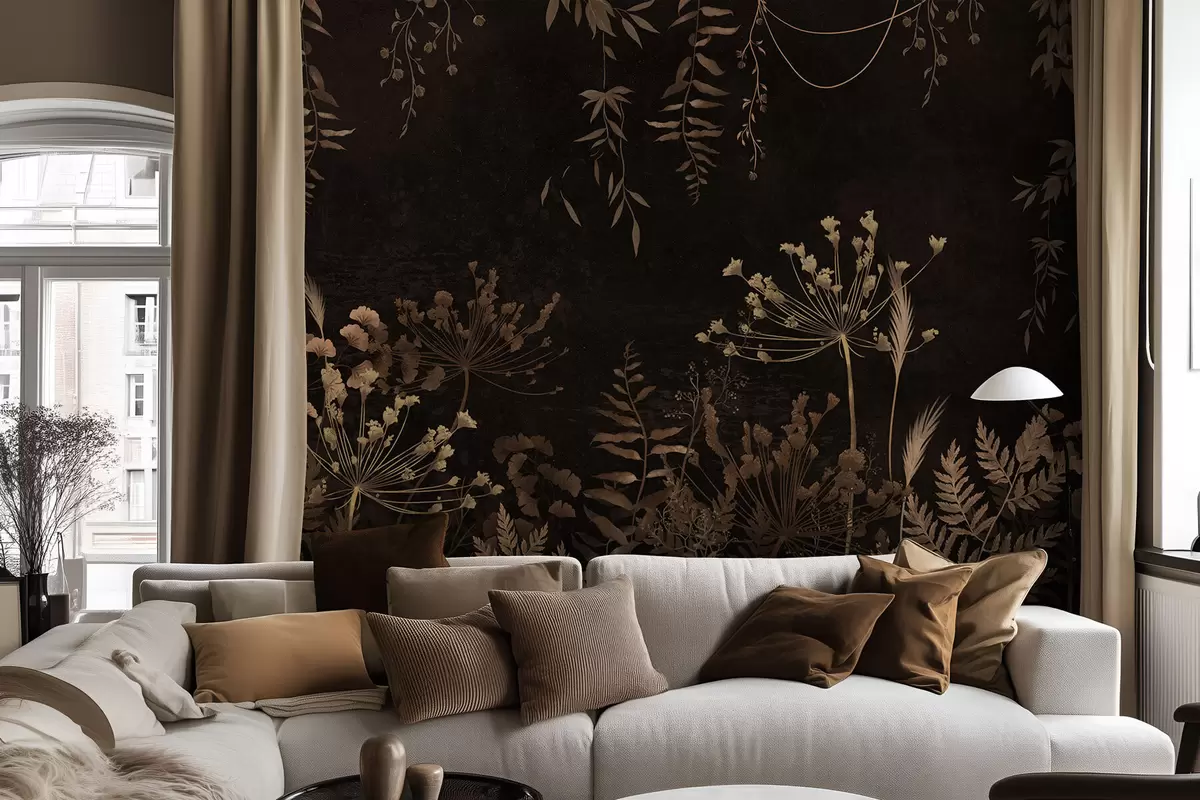 Fototapet Model botanic întunecat cu flori și ierburi Nr. w05092v3