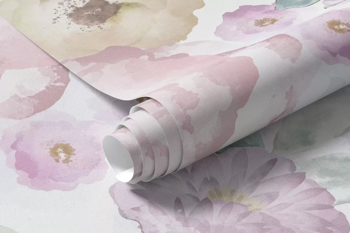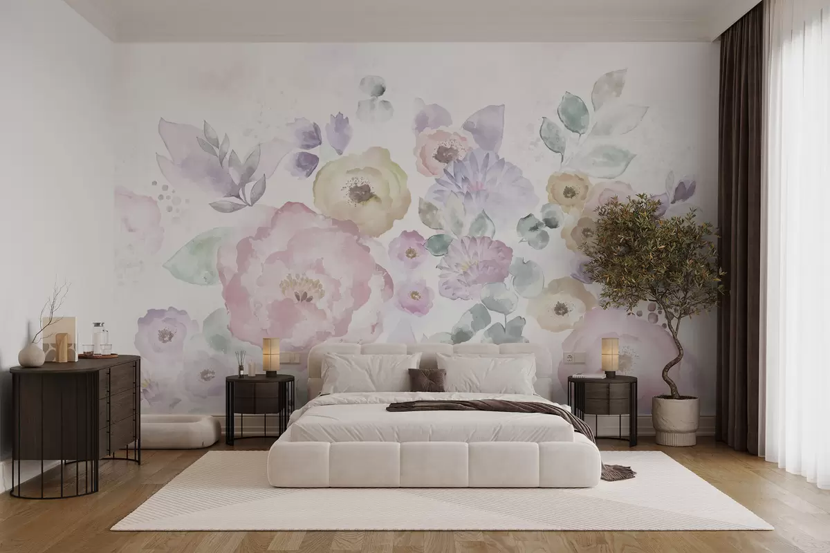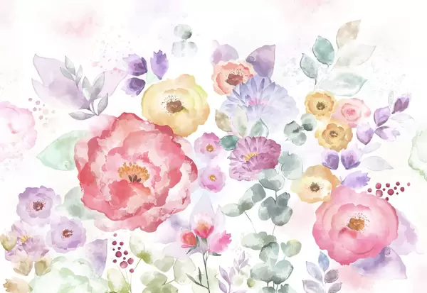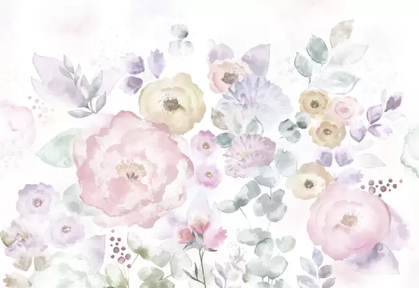 Fototapet Compoziție delicată în acuarelă cu flori și frunze Nr. w05093