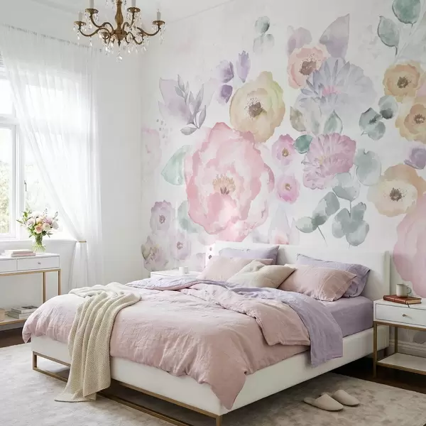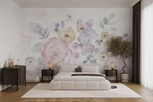 Fototapet Compoziție delicată în acuarelă cu flori și frunze Nr. w05093