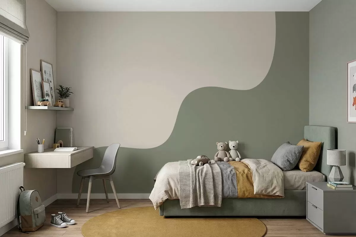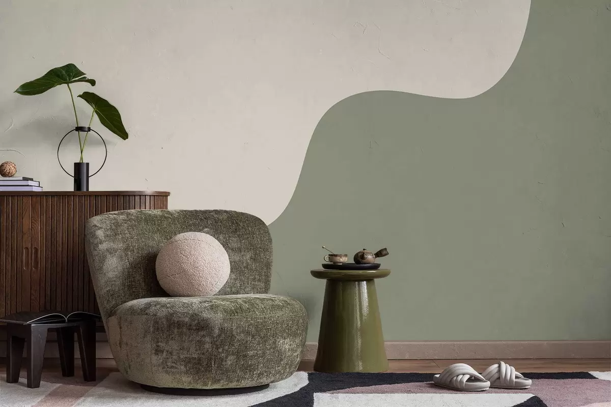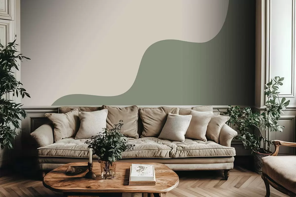 Fototapet Forme abstracte fluide în nuanțe de bej deschis și verde Nr. w05097
