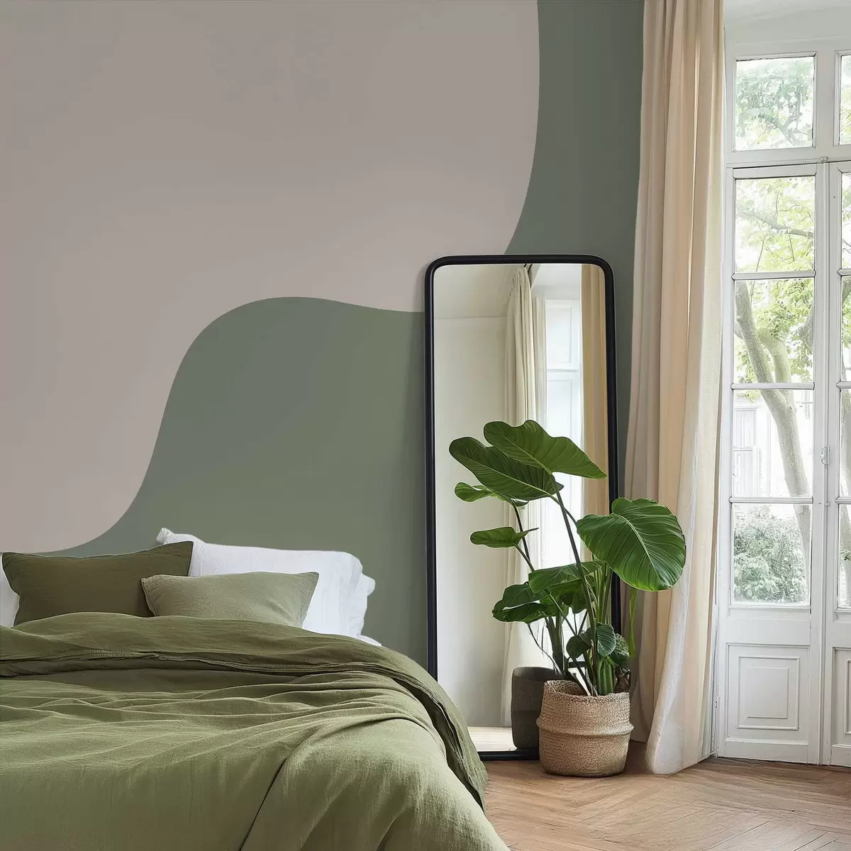 Fototapet Forme abstracte fluide în nuanțe de bej deschis și verde Nr. w05097