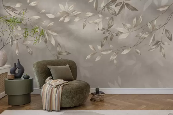 Fototapet Ramuri elegante cu frunze în nuanțe de bej pe un fundal deschis Nr. w05113