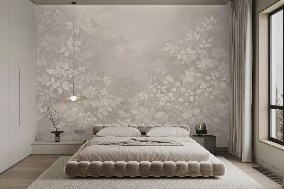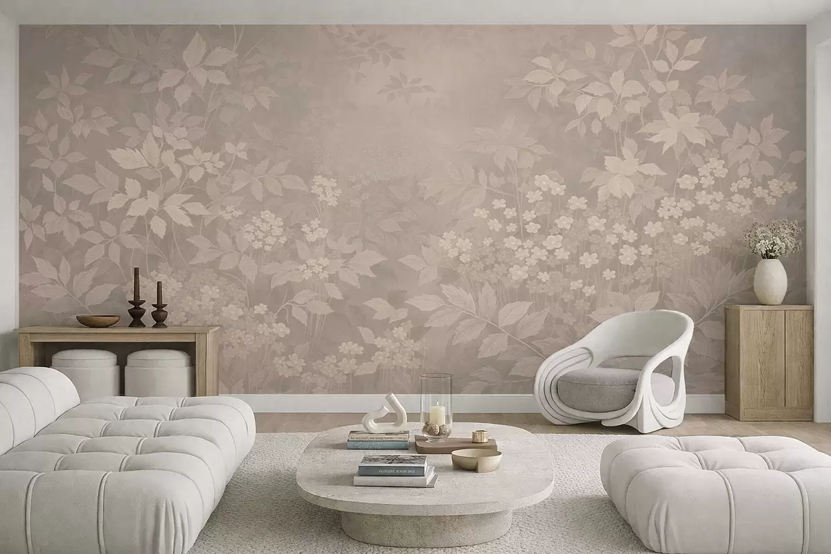 Fototapet Model botanic delicat cu frunze și flori în ceață Nr. w05115v1