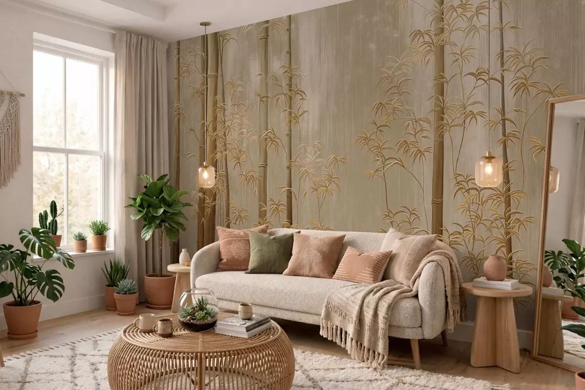 Fototapet Bambus bej cu tulpini subțiri Nr. w05120v2