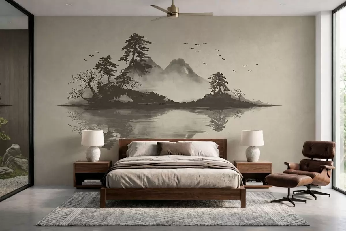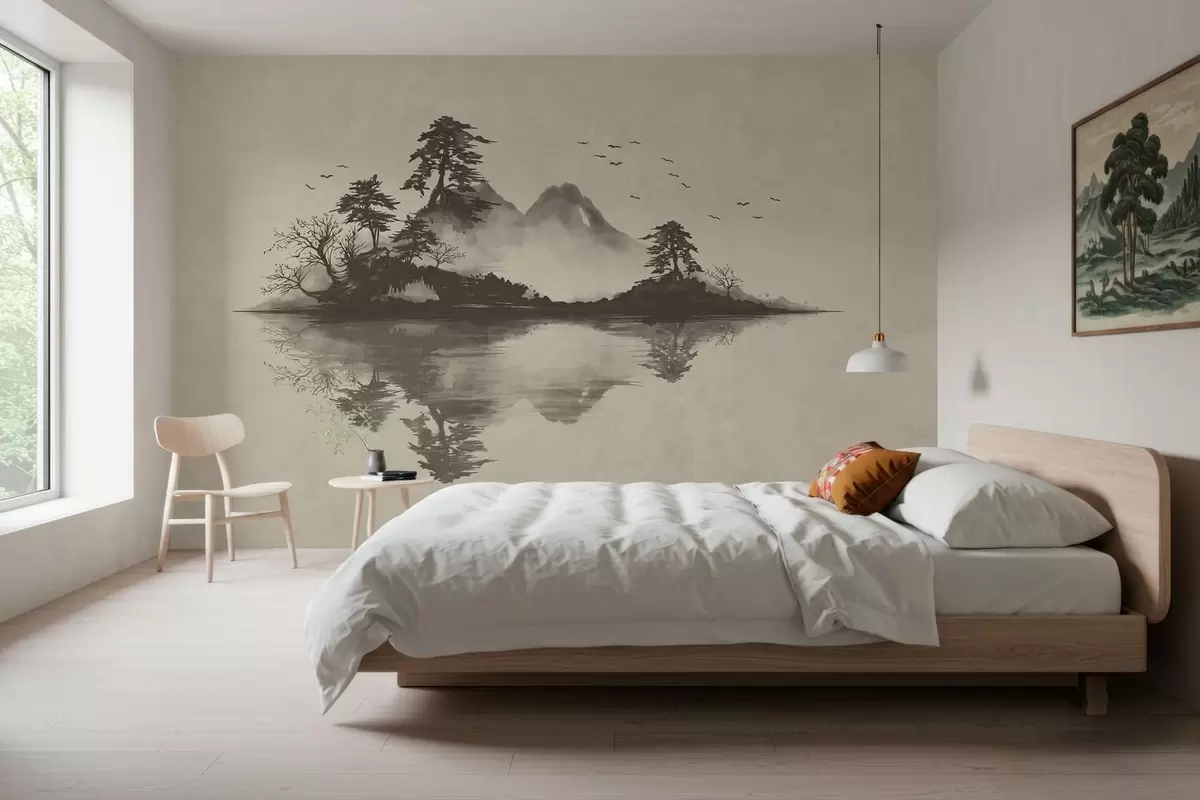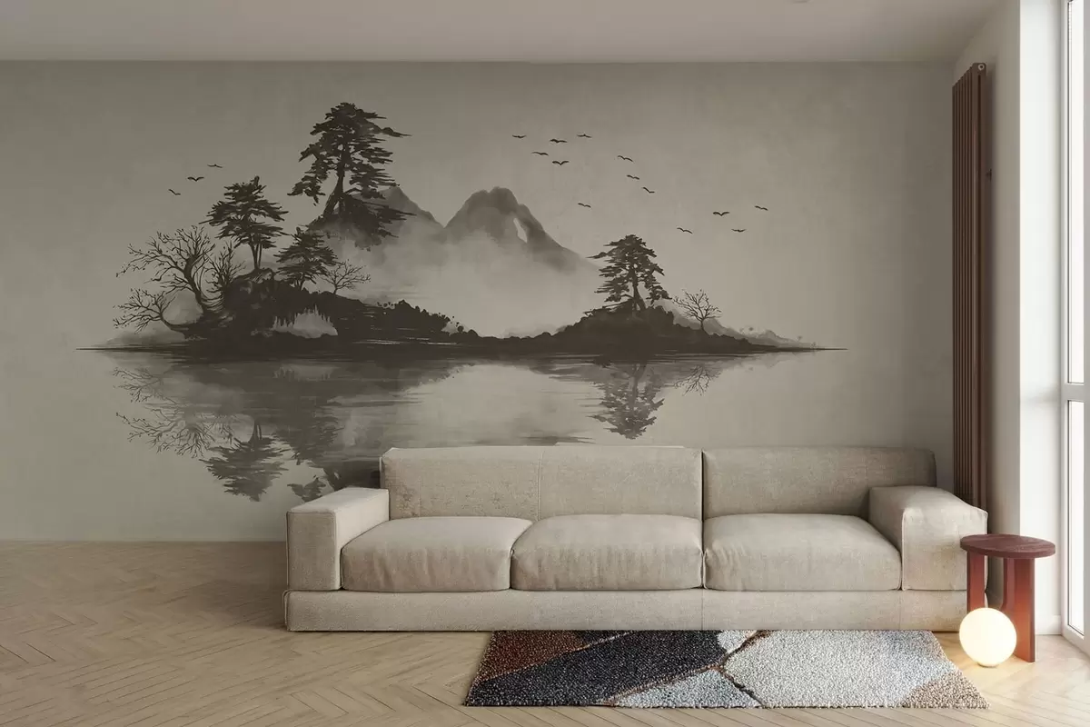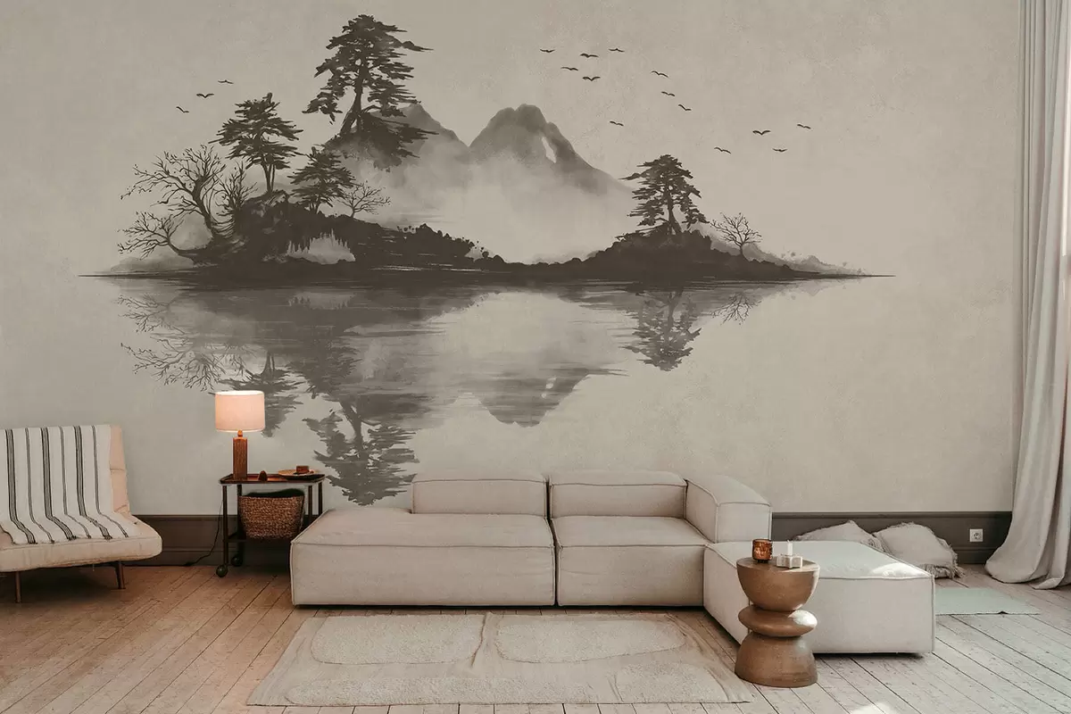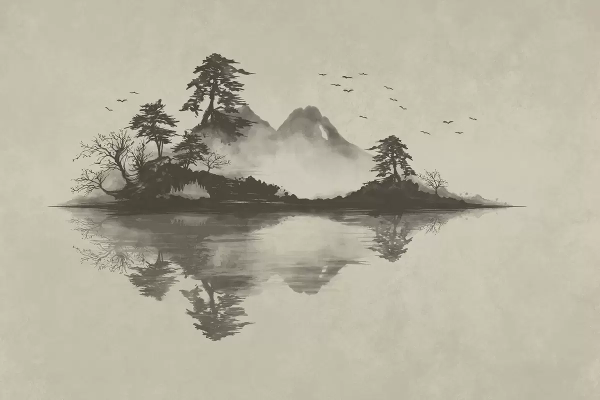 Fototapet Peisaj montan în stil sumi-e, în nuanțe delicate de gri Nr. w05124v1