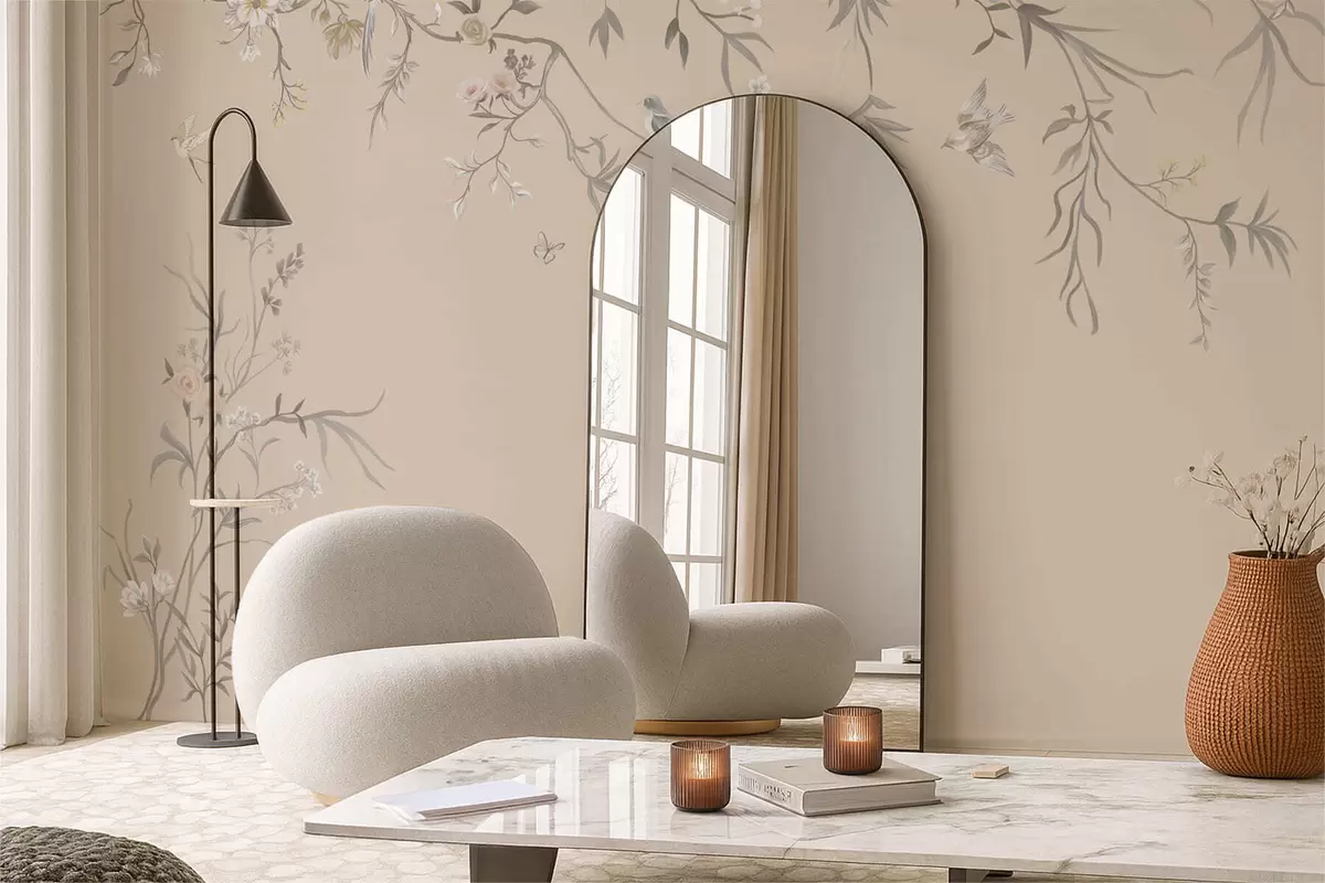 Fototapet Ramuri florale cu păsări pe fundal bej cald Nr. w05127v1