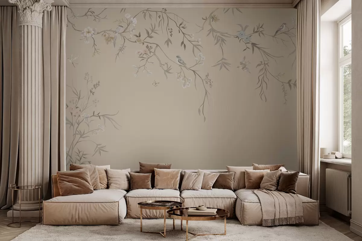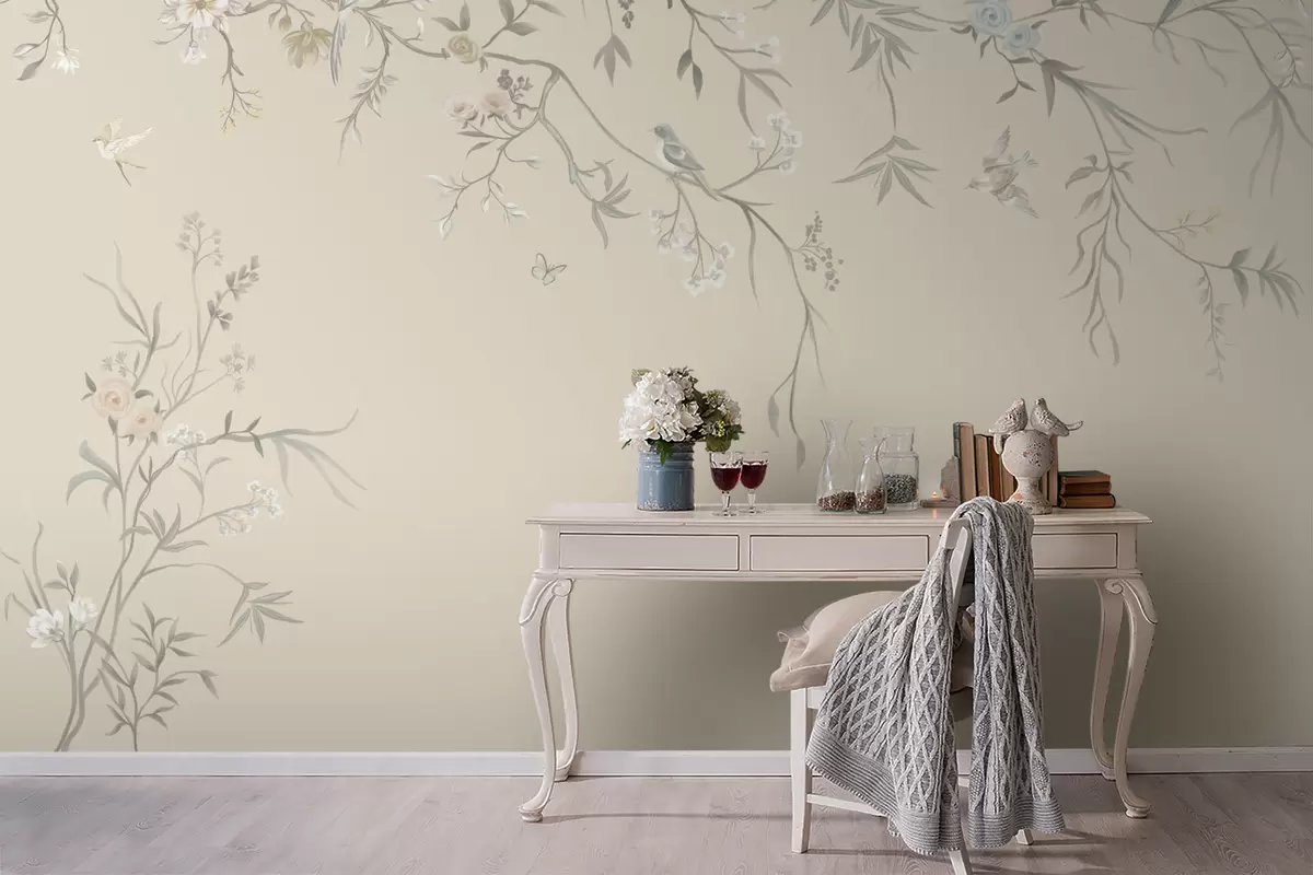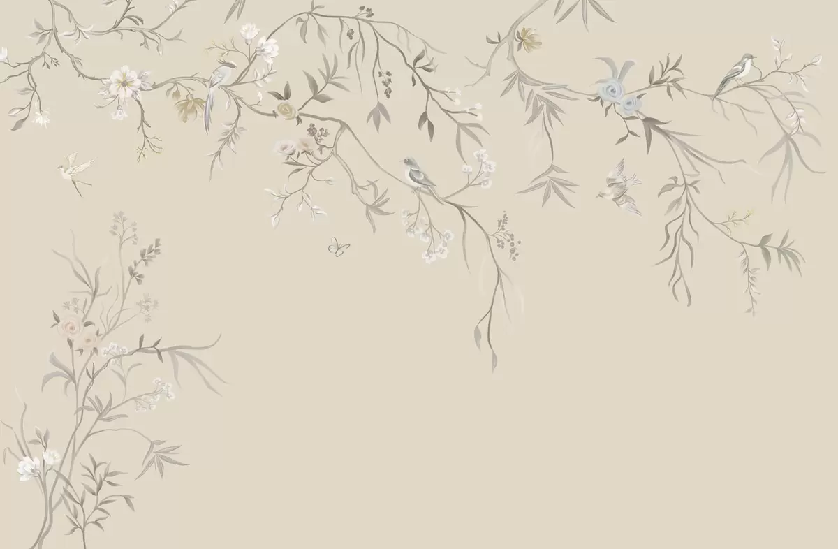 Fototapet Flori și păsări luminoase pe un fundal pastelat Nr. w05127v2